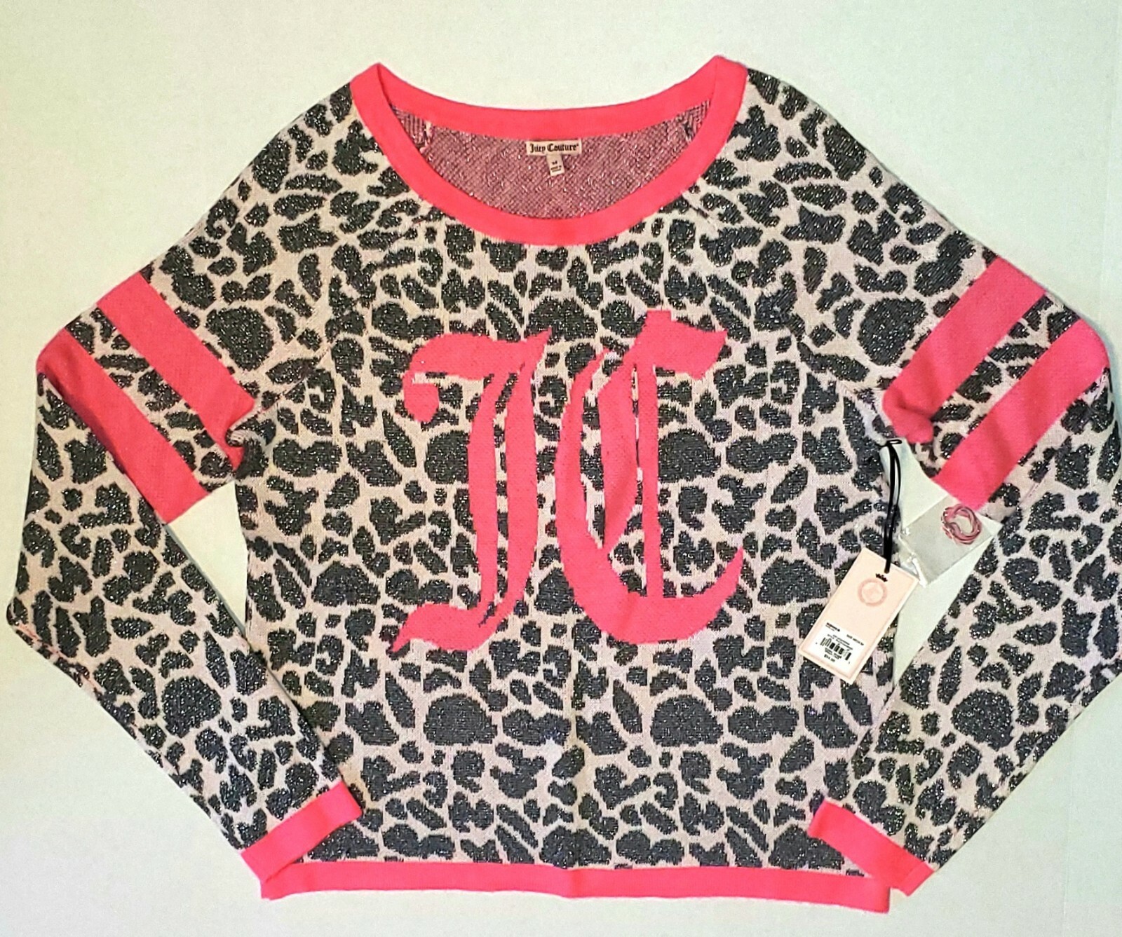 как выглядит NWT JUICY COUTURE Bright Lines Pink Metallic Silver Sweater SZM фото