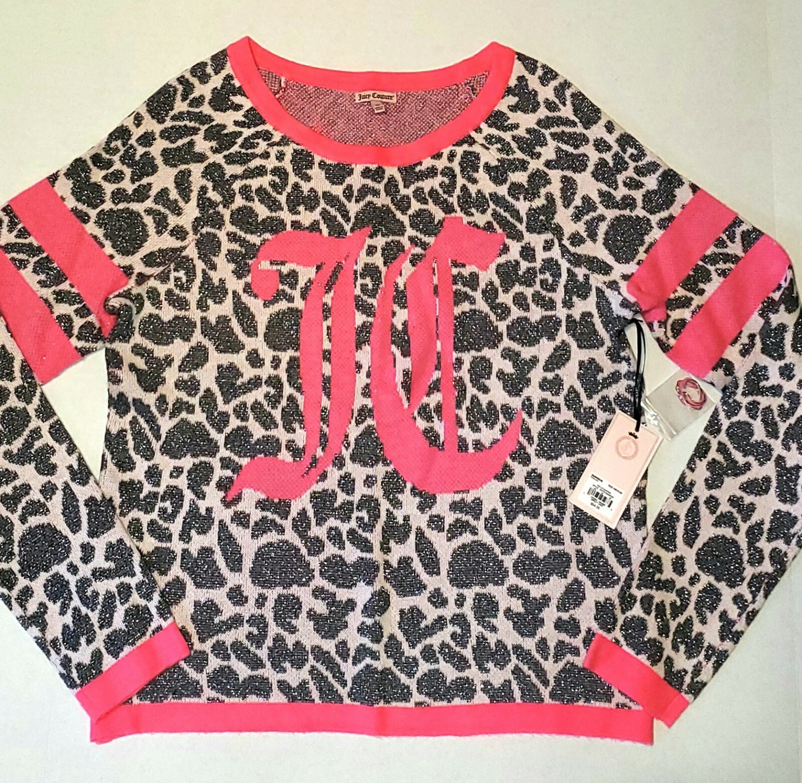 NWT JUICY COUTURE Bright Lines Pink Metallic Silver Sweater SZM