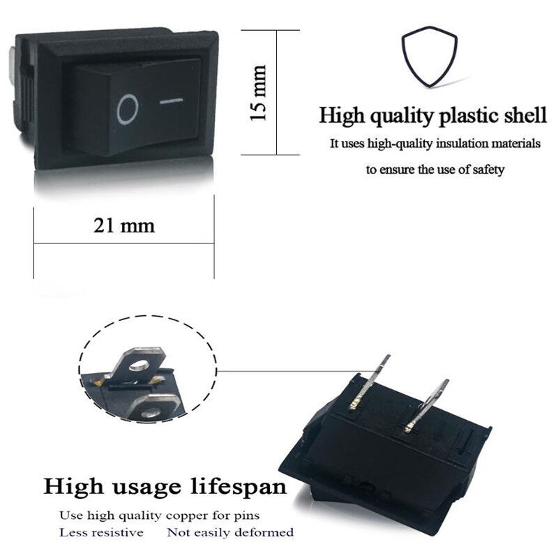 100PCS 2PIN Kcd1 Boat Rocker Switch SPST Snap-in ON/OFF Position Snap 6A/250V