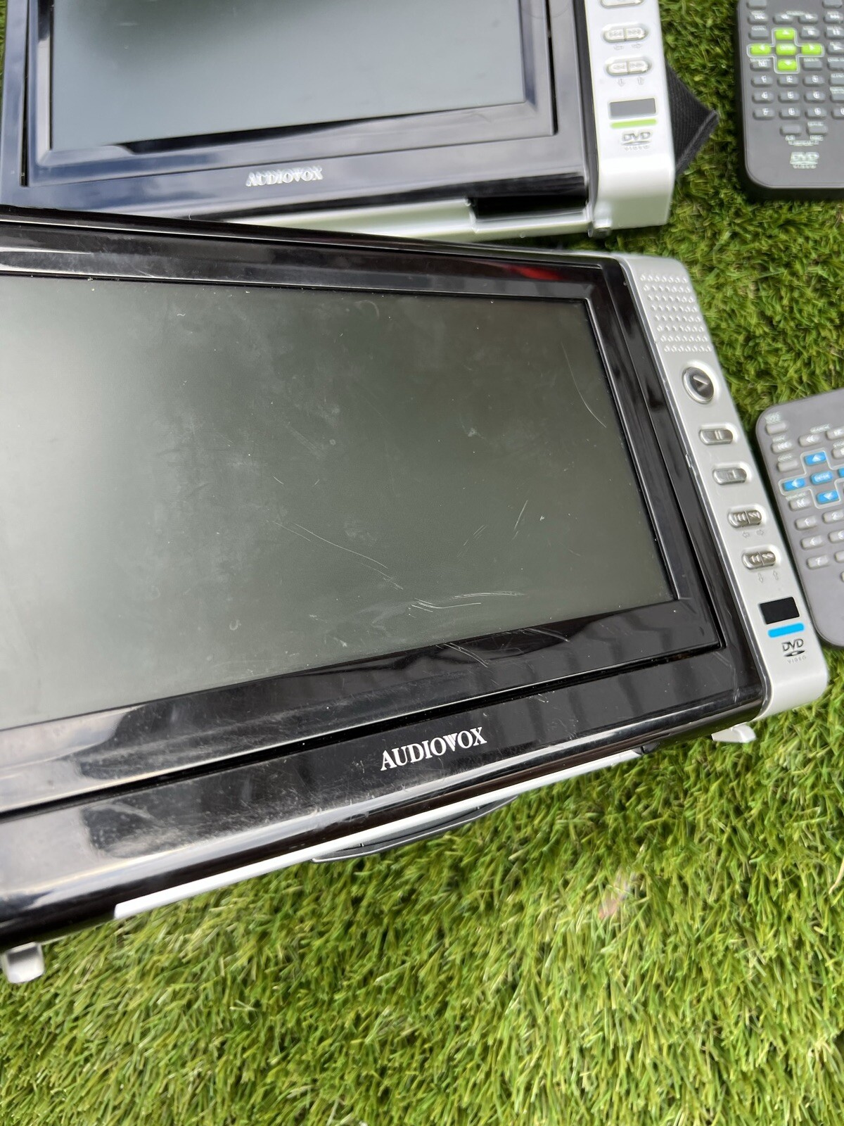 Pair of Audiovox 9 Twin DVD Players PVS72901 w/ Remotes, Wires, Bag