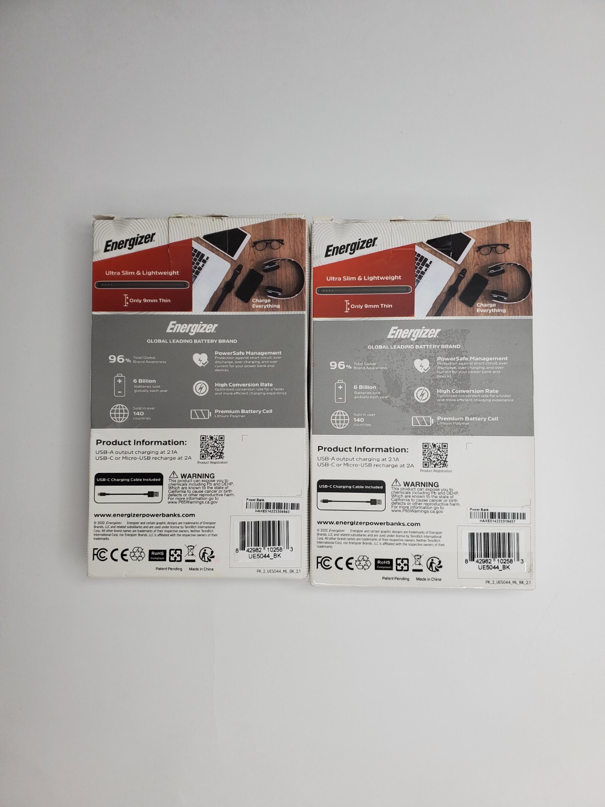 LOT OF 2-Energizer 5,000MAH Portable Charger for Apple, Android, Google, Samsung