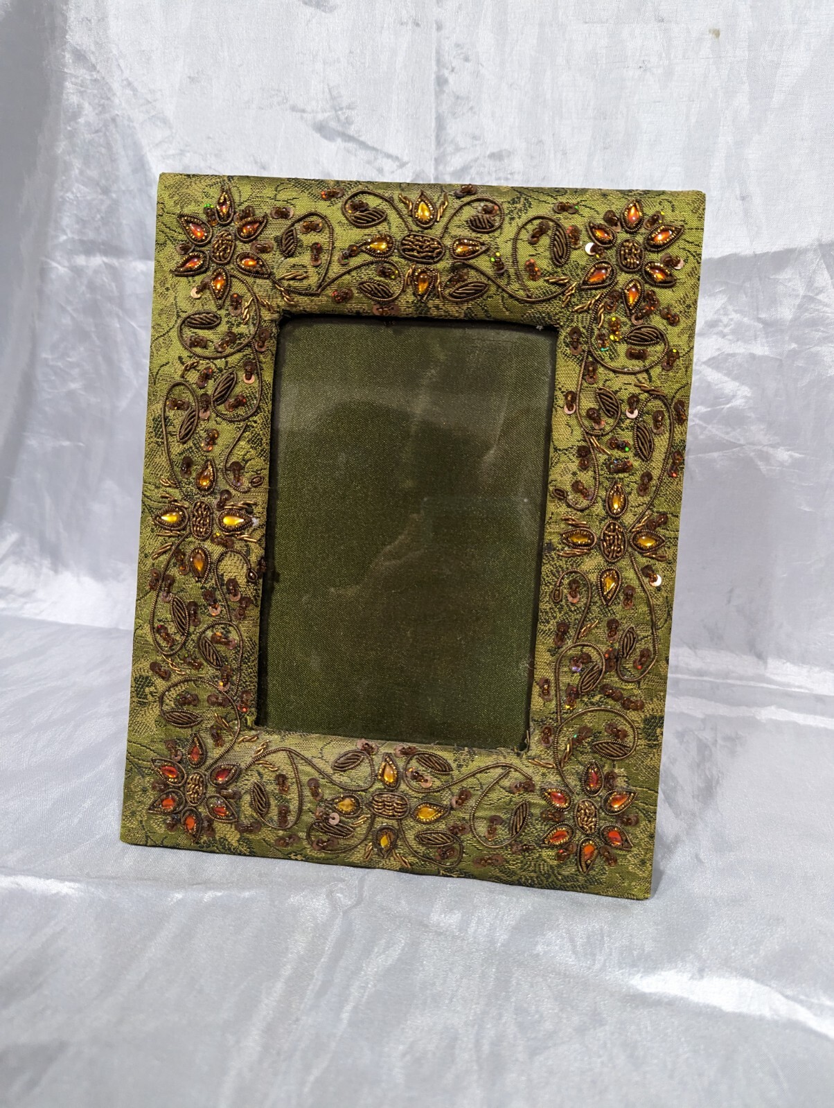 как выглядит Beaded Picture Frame 4x6 Green Made In India фото