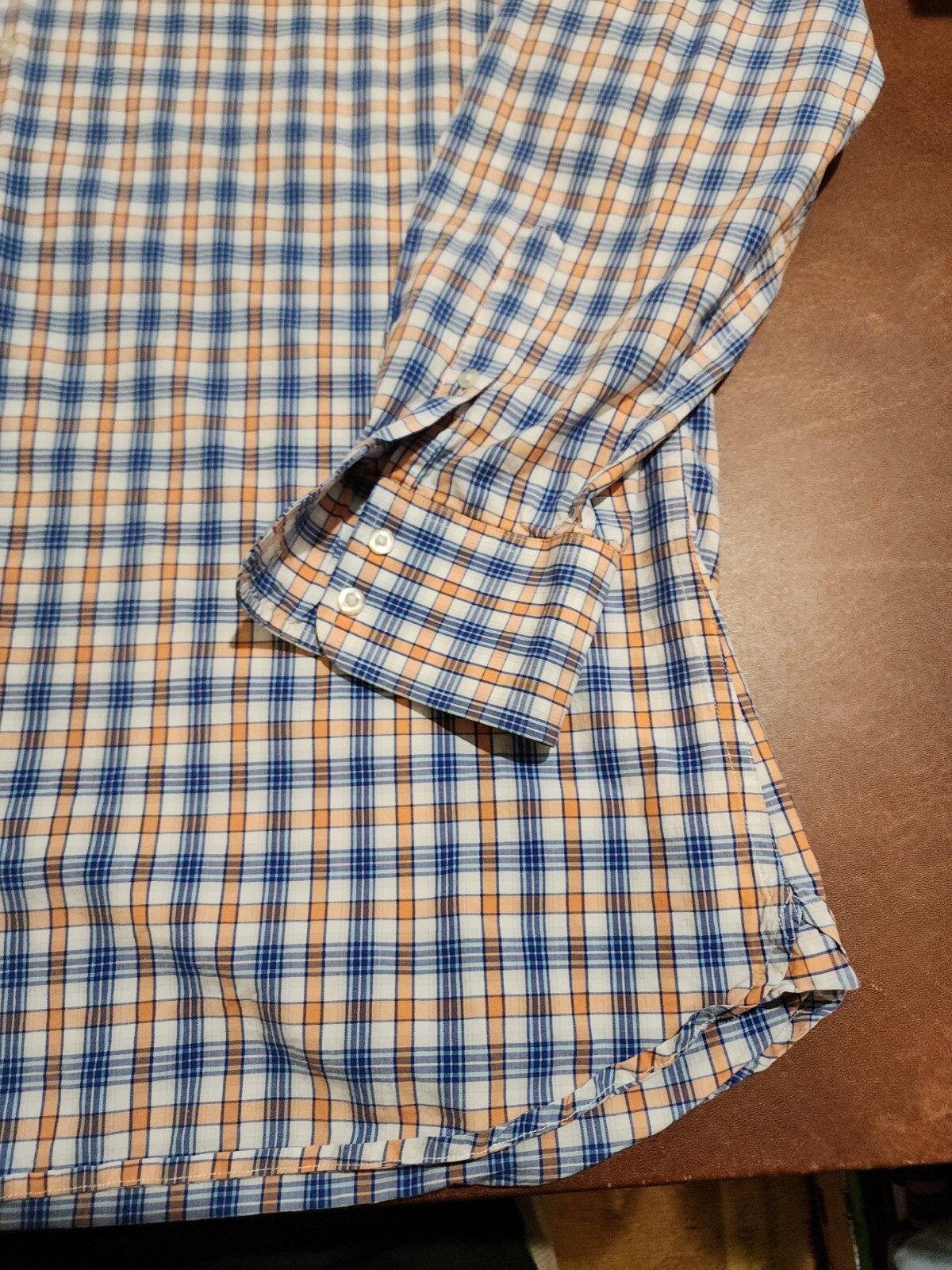 Saks Fifth Avenue 2-Ply 100's Men's LARGE L/S White/Blue/Orange Shirt EUC. GB13