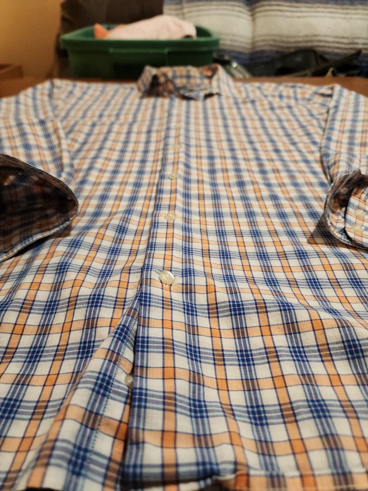 как выглядит Saks Fifth Avenue 2-Ply 100s Mens LARGE L/S White/Blue/Orange Shirt EUC. GB13 фото