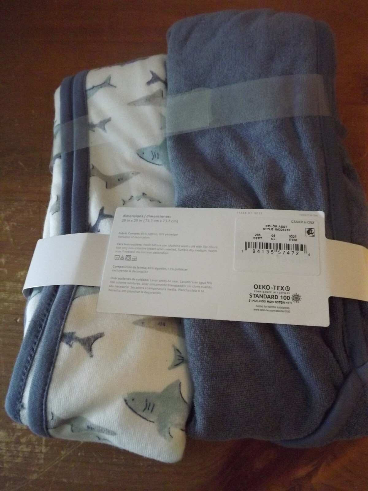 как выглядит Just One You By Carters Unisex Boys Girls Hooded Sharks Towel Set NWT фото