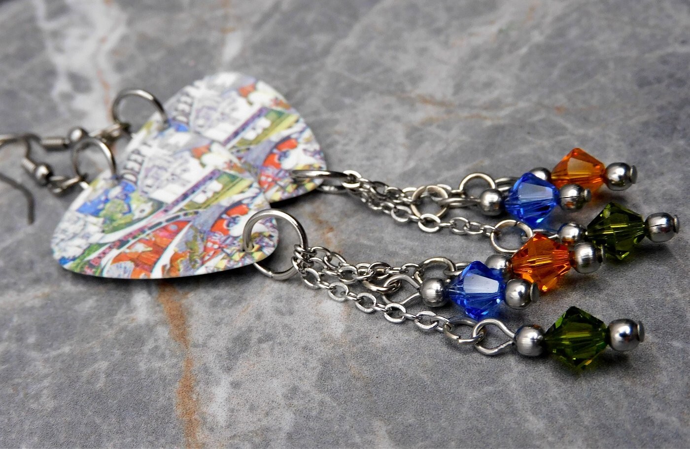 Deep Purple The Book Of Taliesyn Guitar Pick Earrings with Swarovski Crystals
