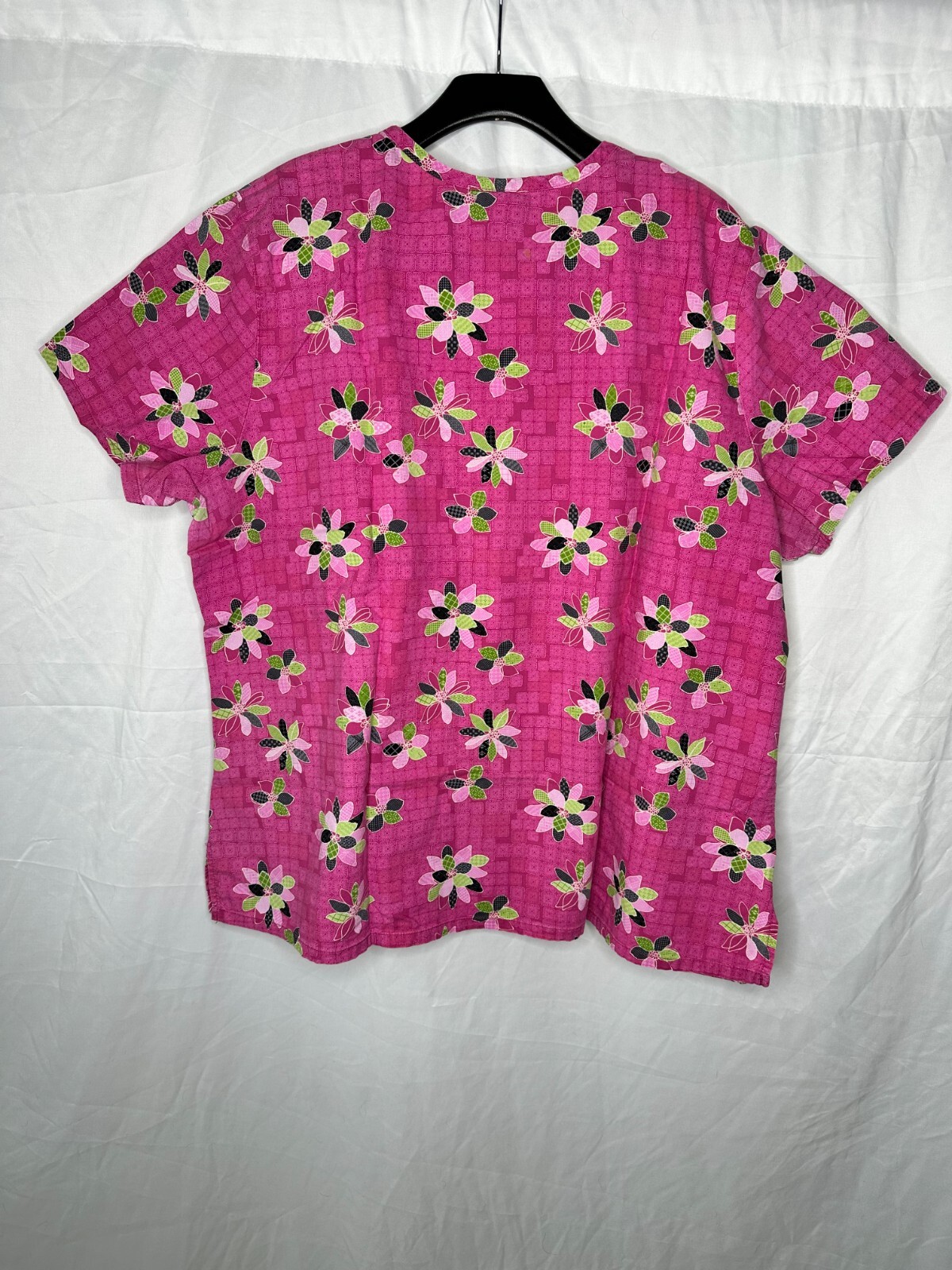Womens Medical Nursing Scrub Size XL Pink Purple Flower Printed Short Sleeve