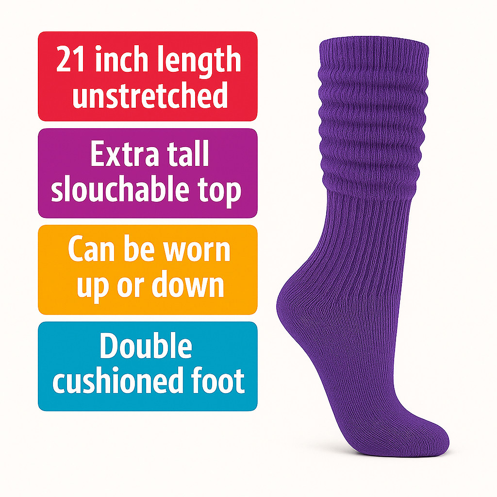 Purple Cotton Slouch Socks 1 PAIR Size 9 to 11