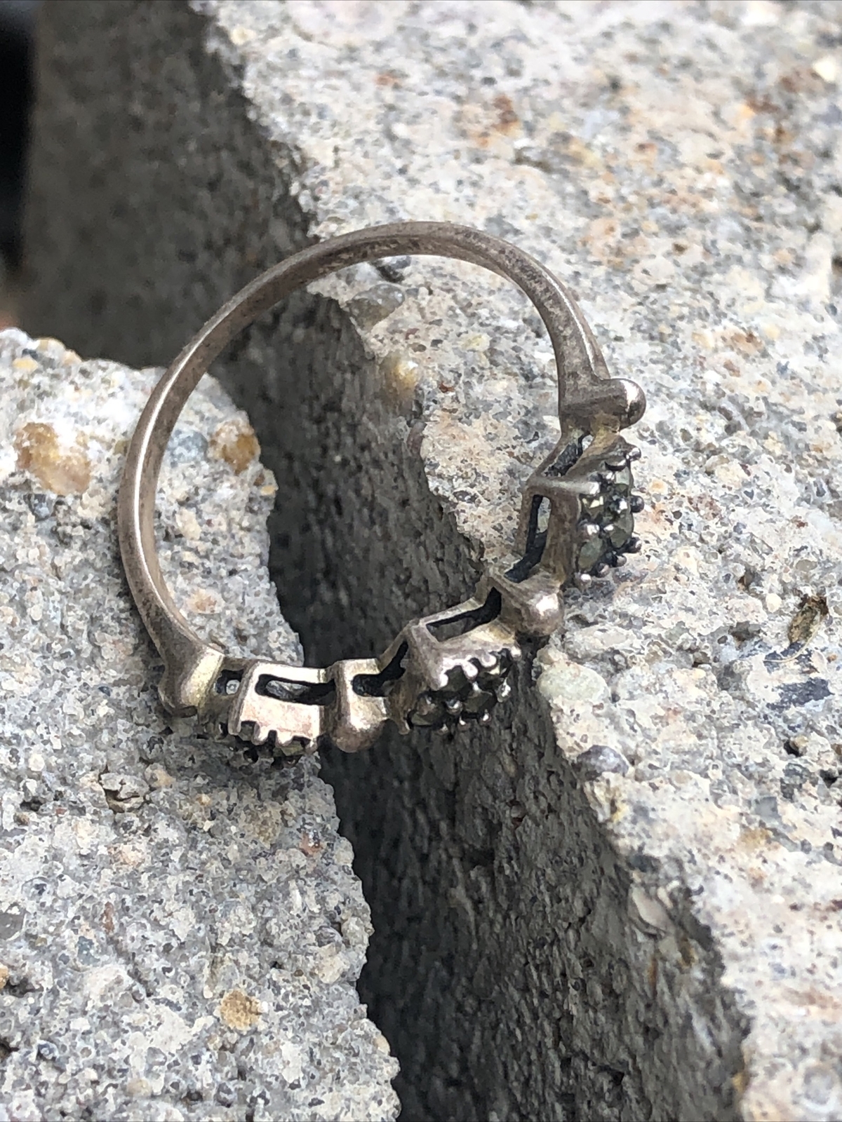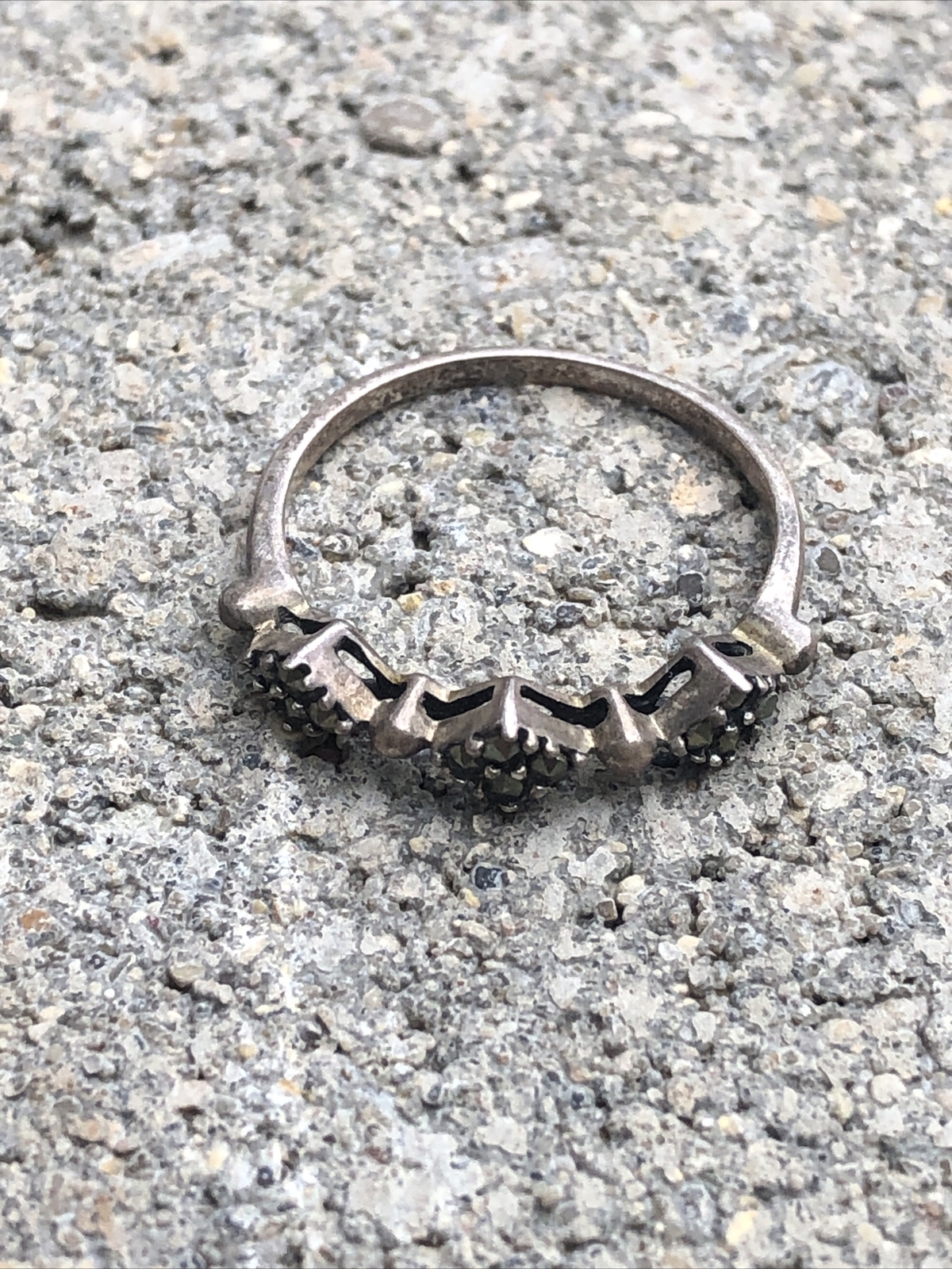 как выглядит Vintage Delicate 925 Sterling Silver Three Rhombus Marcasite Ring 1.4g, 7s фото