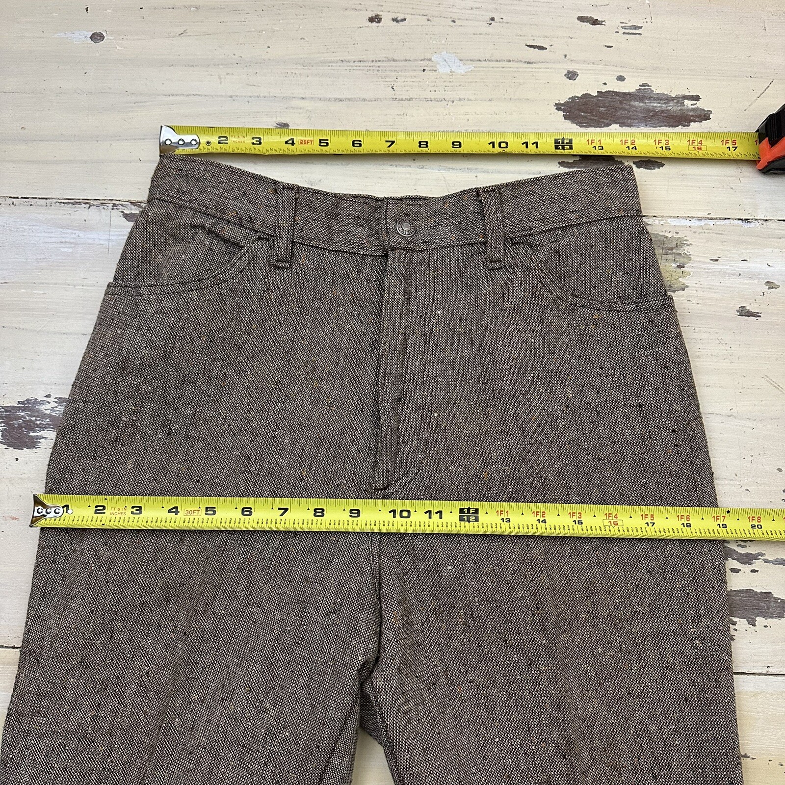 как выглядит LEVIS - Vtg 60s-70s Big E Brown Tweed Flare Jean-cut Pants, Womens 10-12 28 x 26 фото