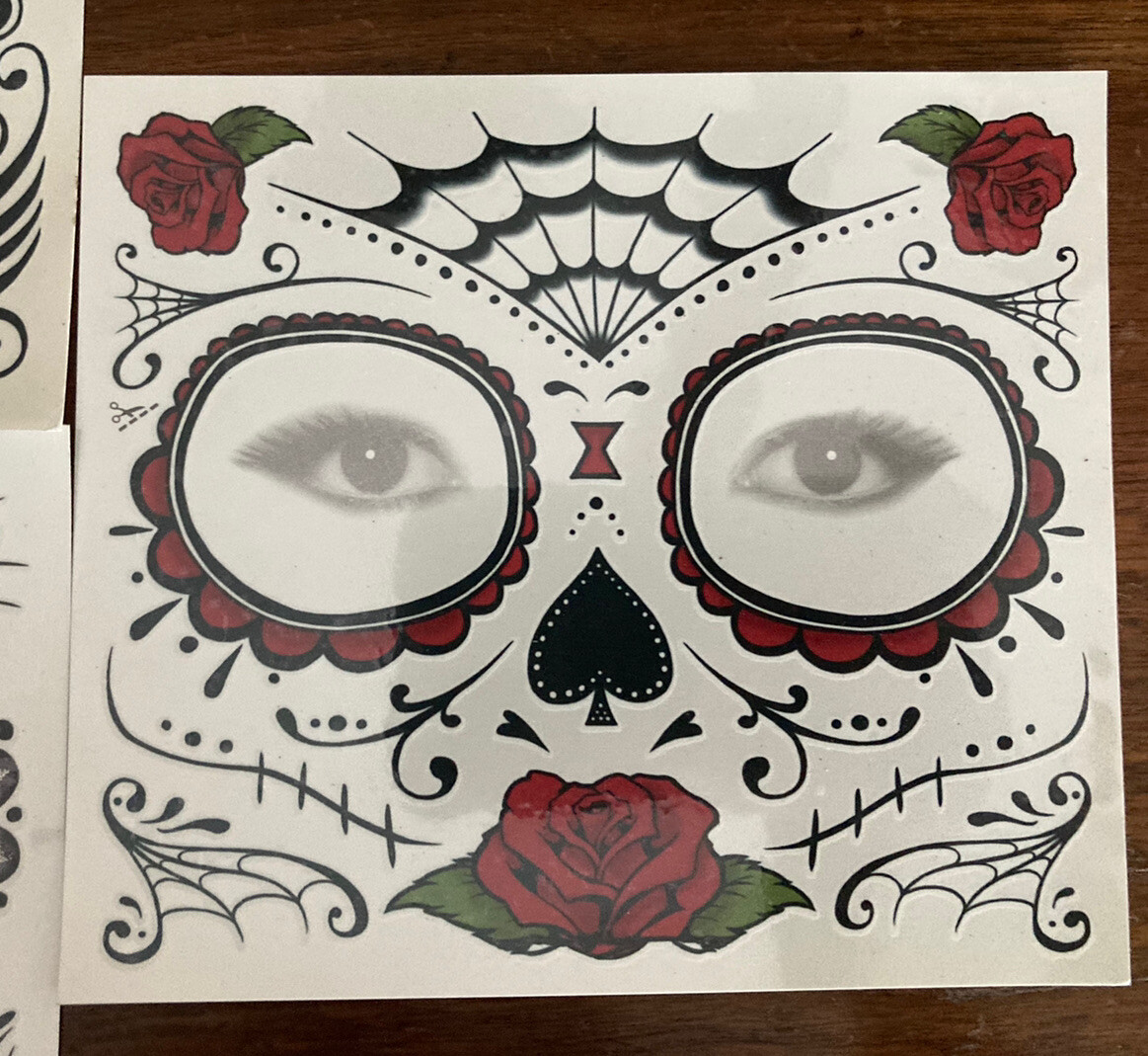 Day of the Dead sugar skull face tattoo Spirit Halloween - Lot of 3 - Bonus