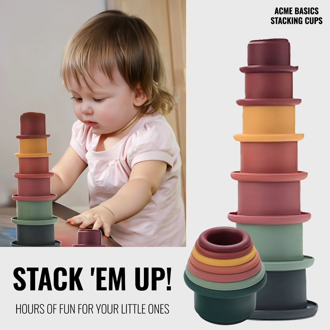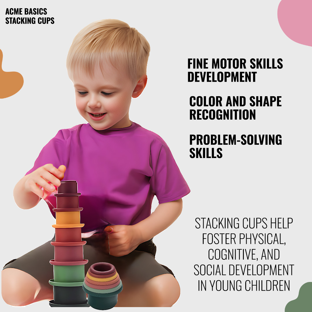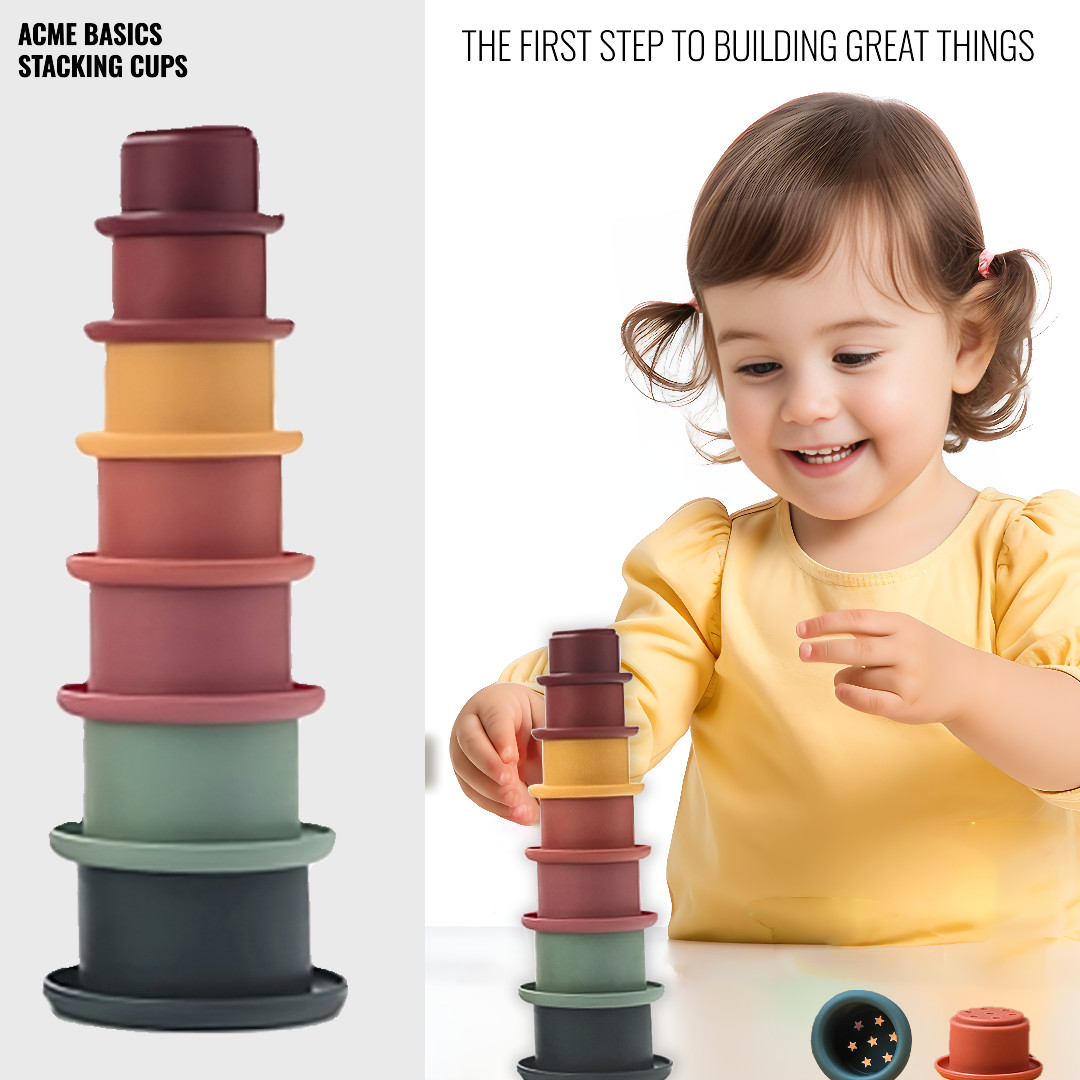 Toy Stacking Cups. Waterproof Silicone. Soft Toys for Toddlers Early Education