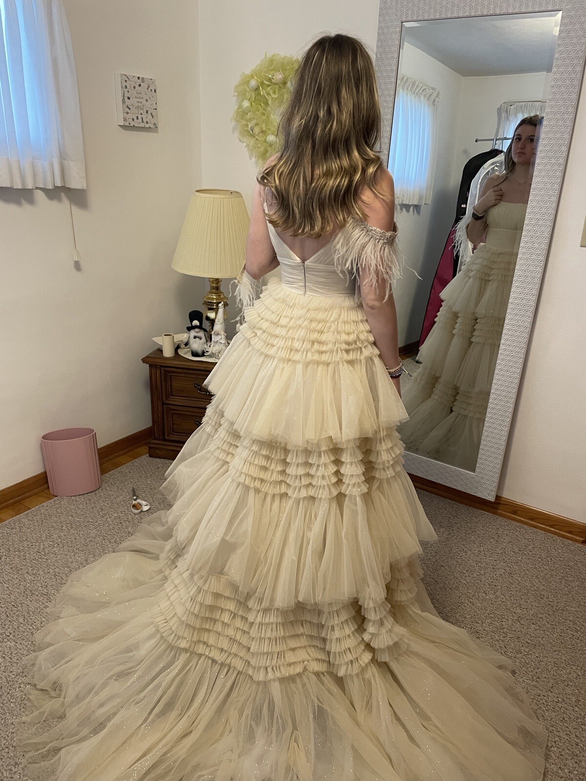 как выглядит Sherri Hill dress size 6 cream prom wedding event gown homecoming Winter formal фото