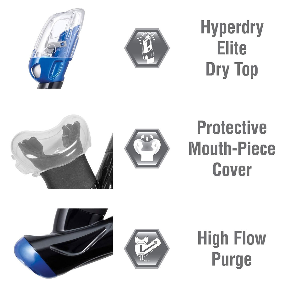 TUSA Visio Tri-Ex Adult Metallic Blue/Black Mask/Snorkel/Fins Travel Set