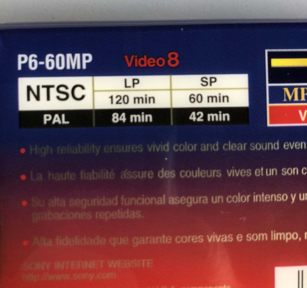 Sony Video Cassette Tape 8MM MP 60 Video 8 60 Minutes P6-60MP - New Sealed
