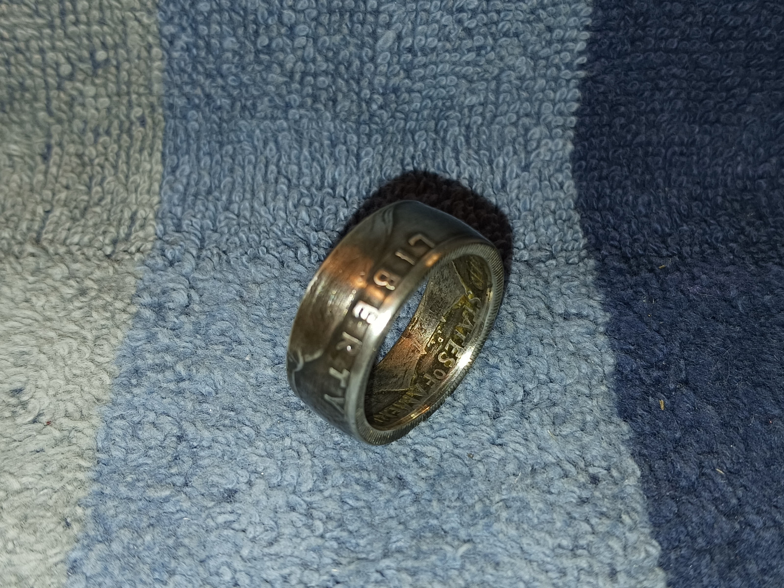 Handcrafted 1961 Franklin 90 silver half dollar coin ring sizes 10 -1/2 B