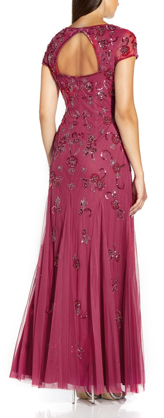 как выглядит Adrianna Papell Dusty Rouge Embellished Mesh Evening Dress NWT Size 2 фото