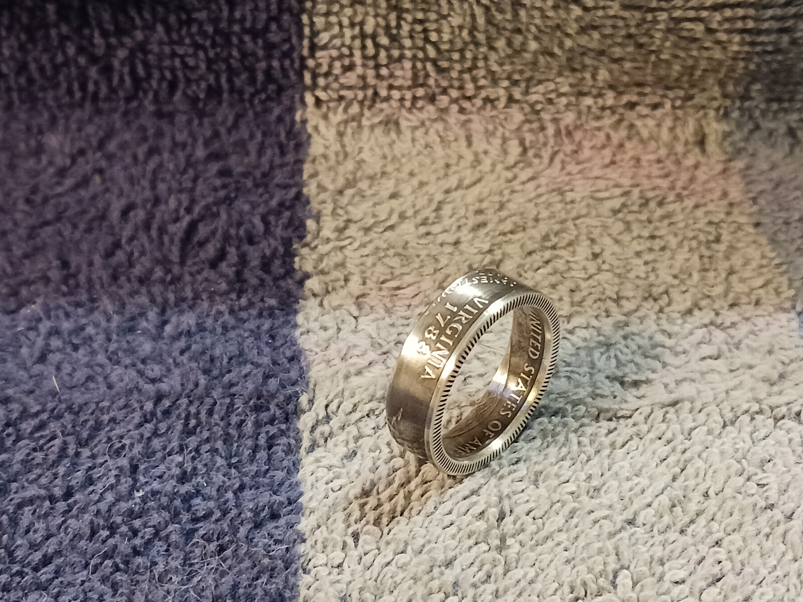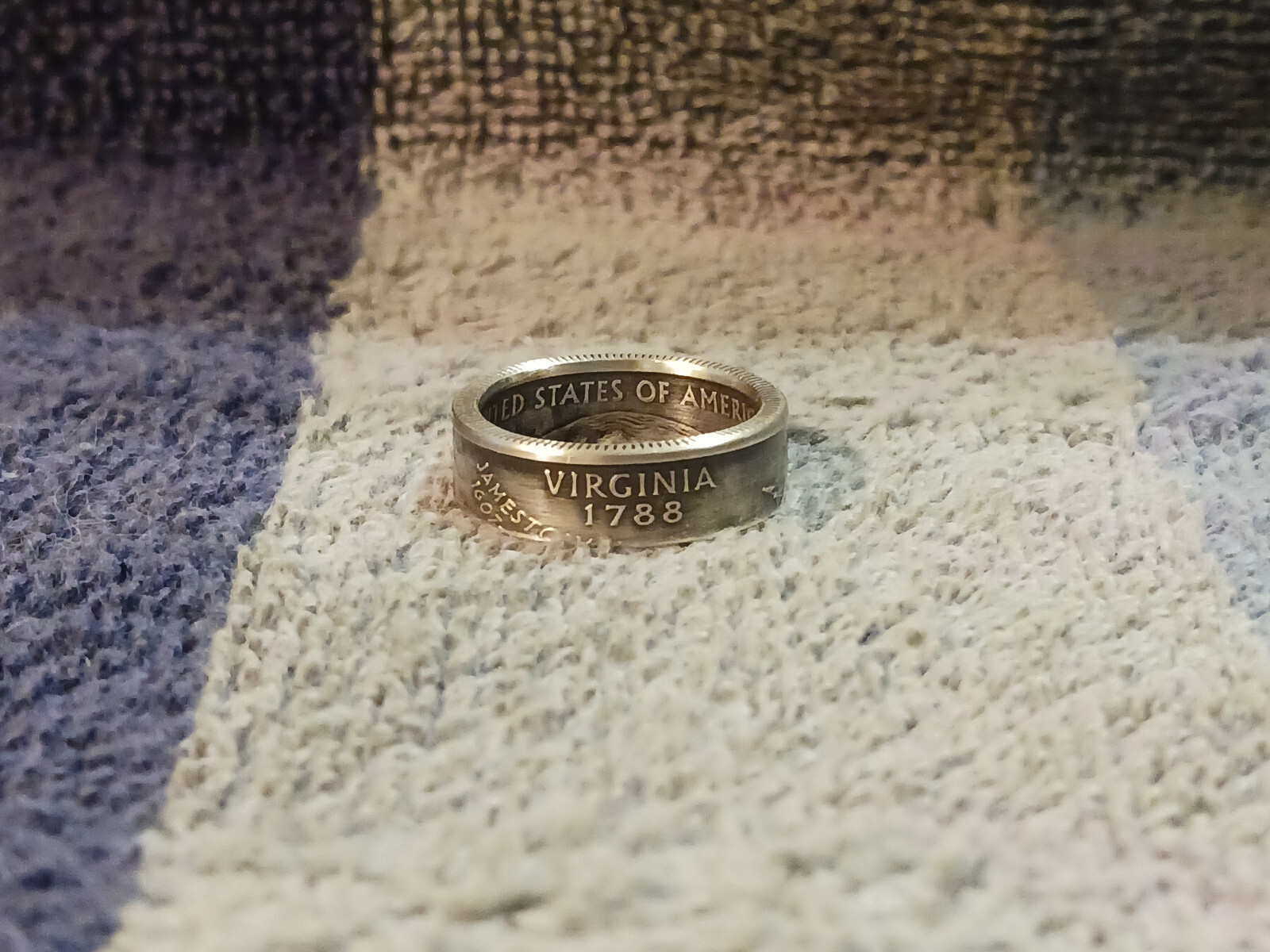 Virginia Handcrafted 90 Silver Washington Quarters coin ring, 2000, size 7