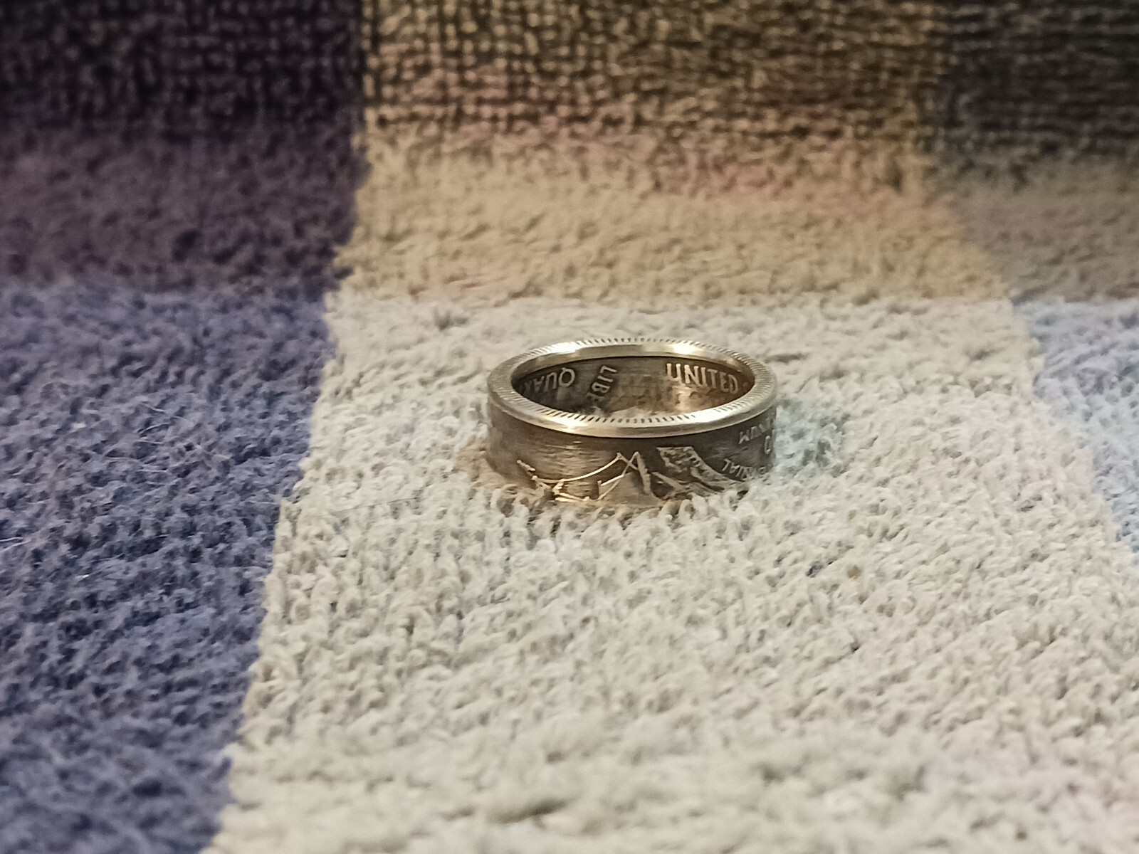 как выглядит Virginia Handcrafted 90 Silver Washington Quarters coin ring, 2000, size 7 фото