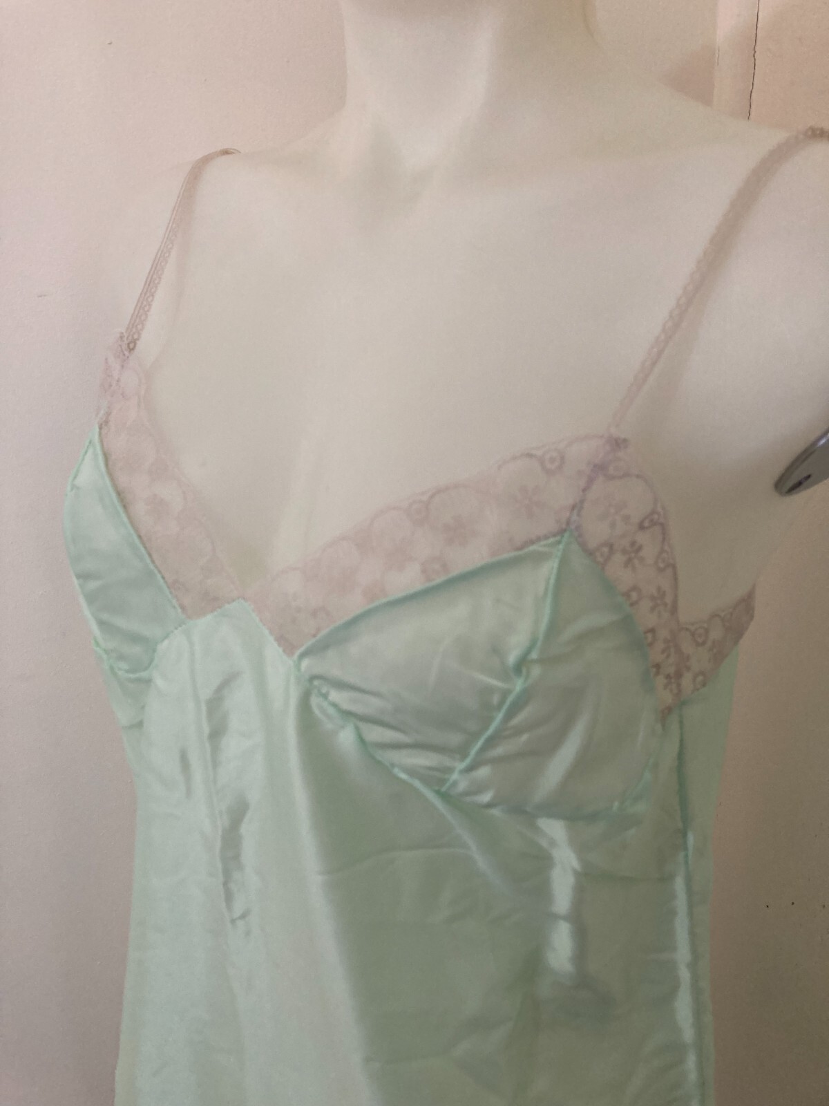 как выглядит Vintage Ladies 1960 Sleep Bed Clothes Lingerie Nightgown Light Green Chemise фото