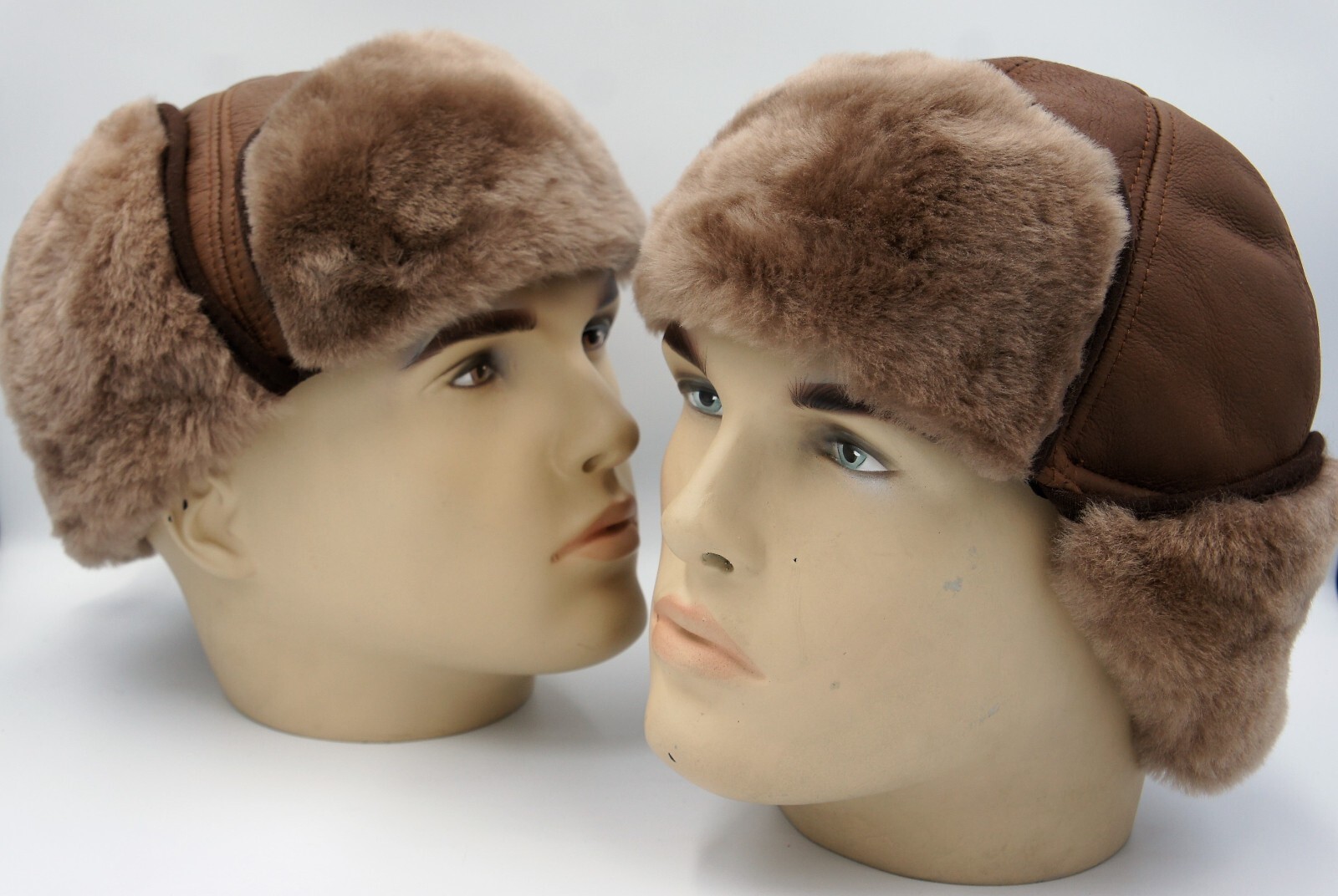 100 Real Sheepskin leather Aviator Trapper Ushanka Hunting Hat S-3X TOFFEE BRWN