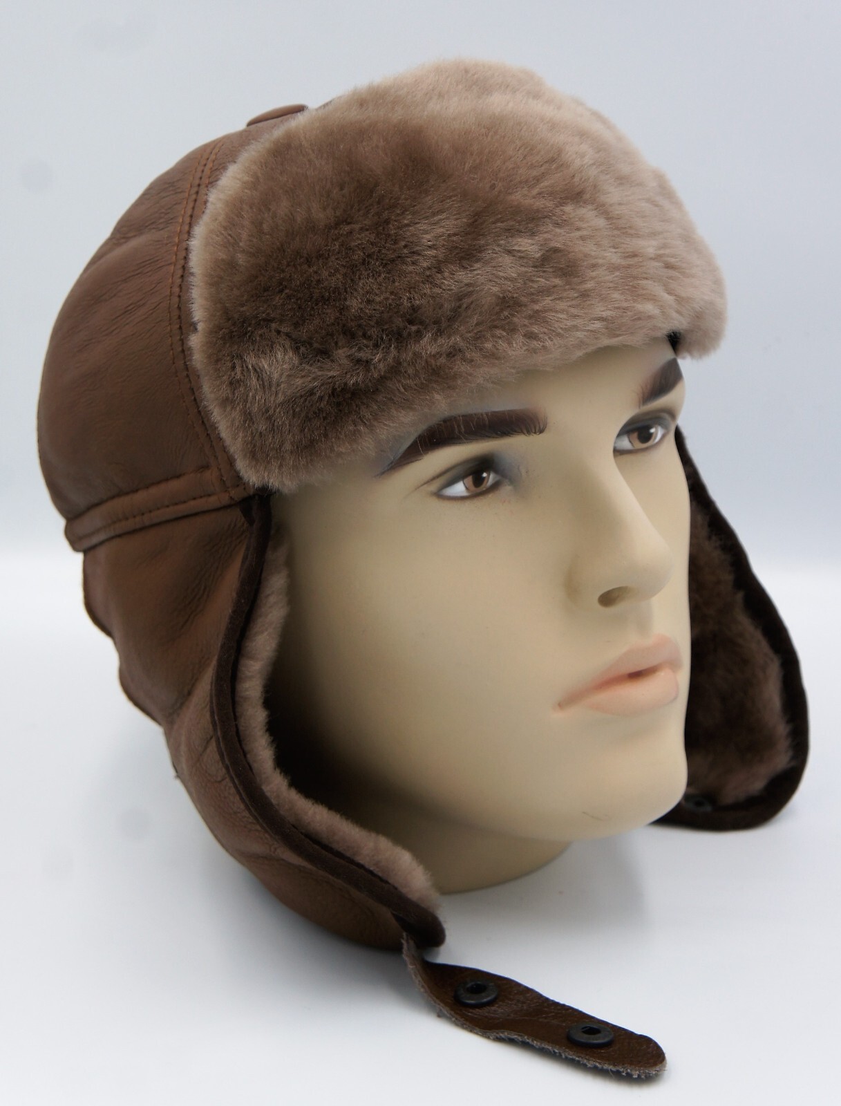 как выглядит 100 Real Sheepskin leather Aviator Trapper Ushanka Hunting Hat S-3X TOFFEE BRWN фото