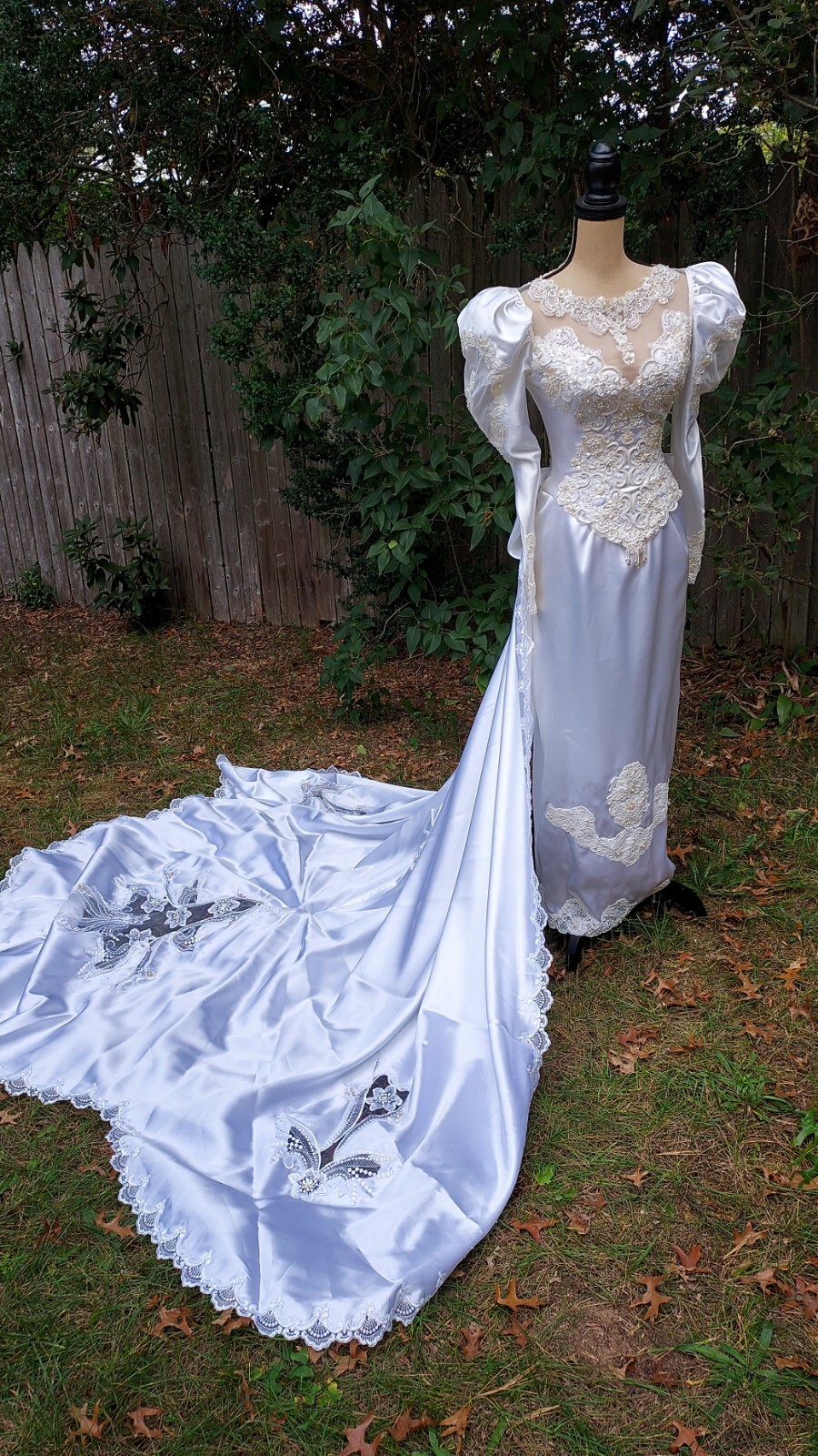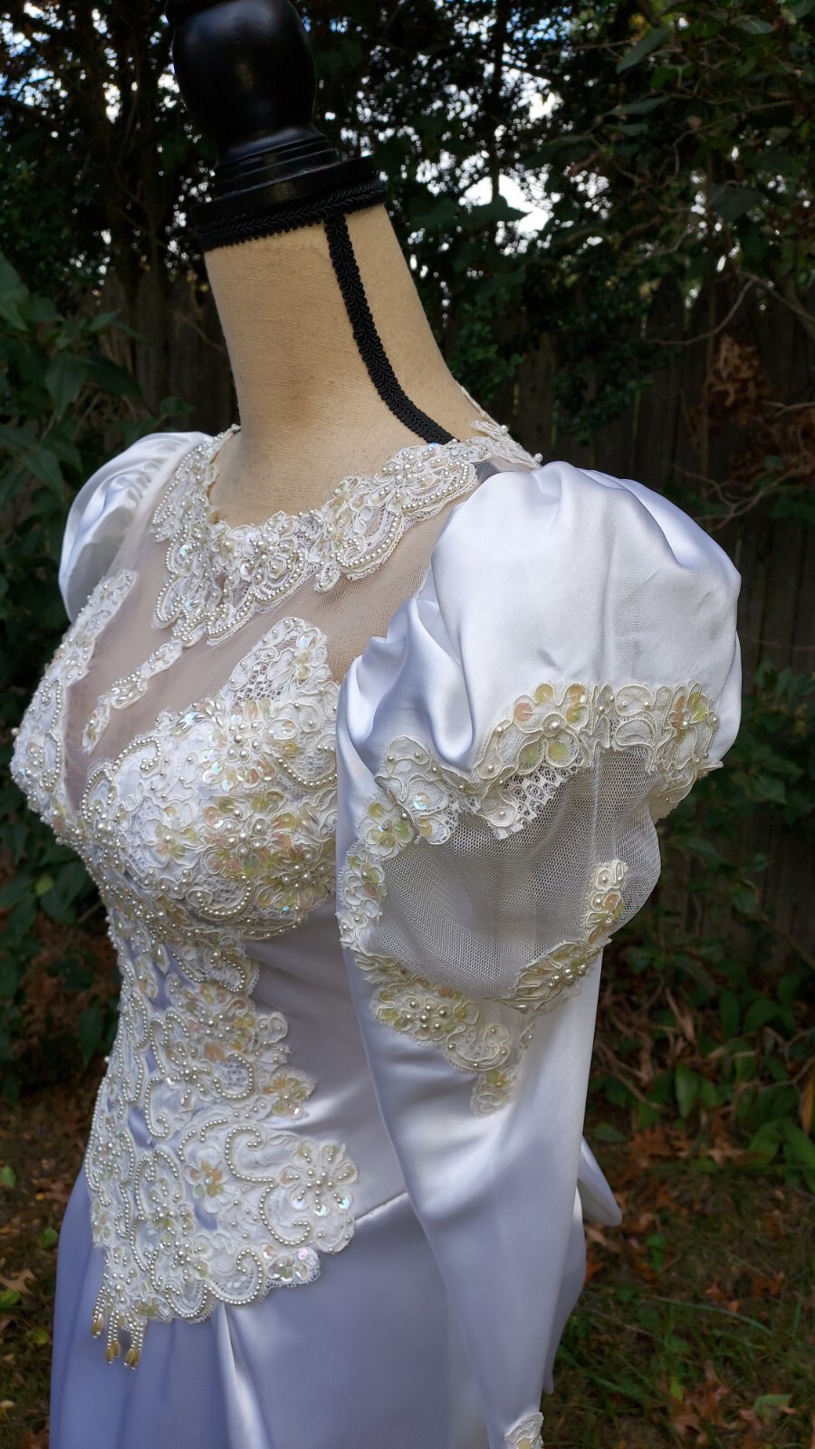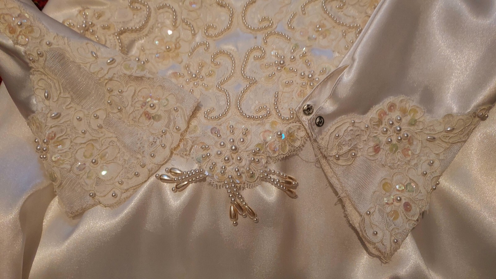 как выглядит Antique Vintage Edwardian Victorian Lace Sequin Beaded Wedding Dress With Train фото