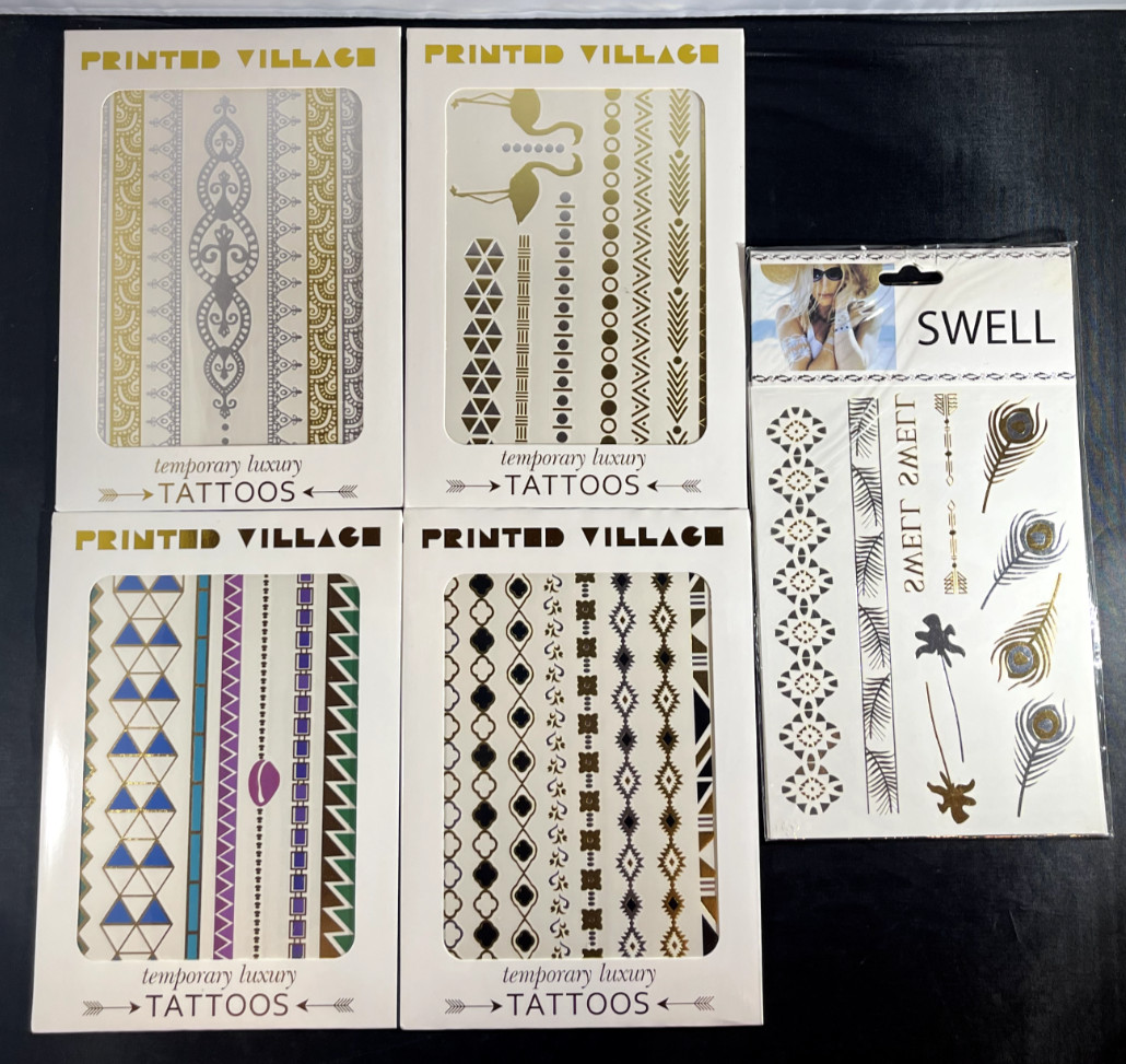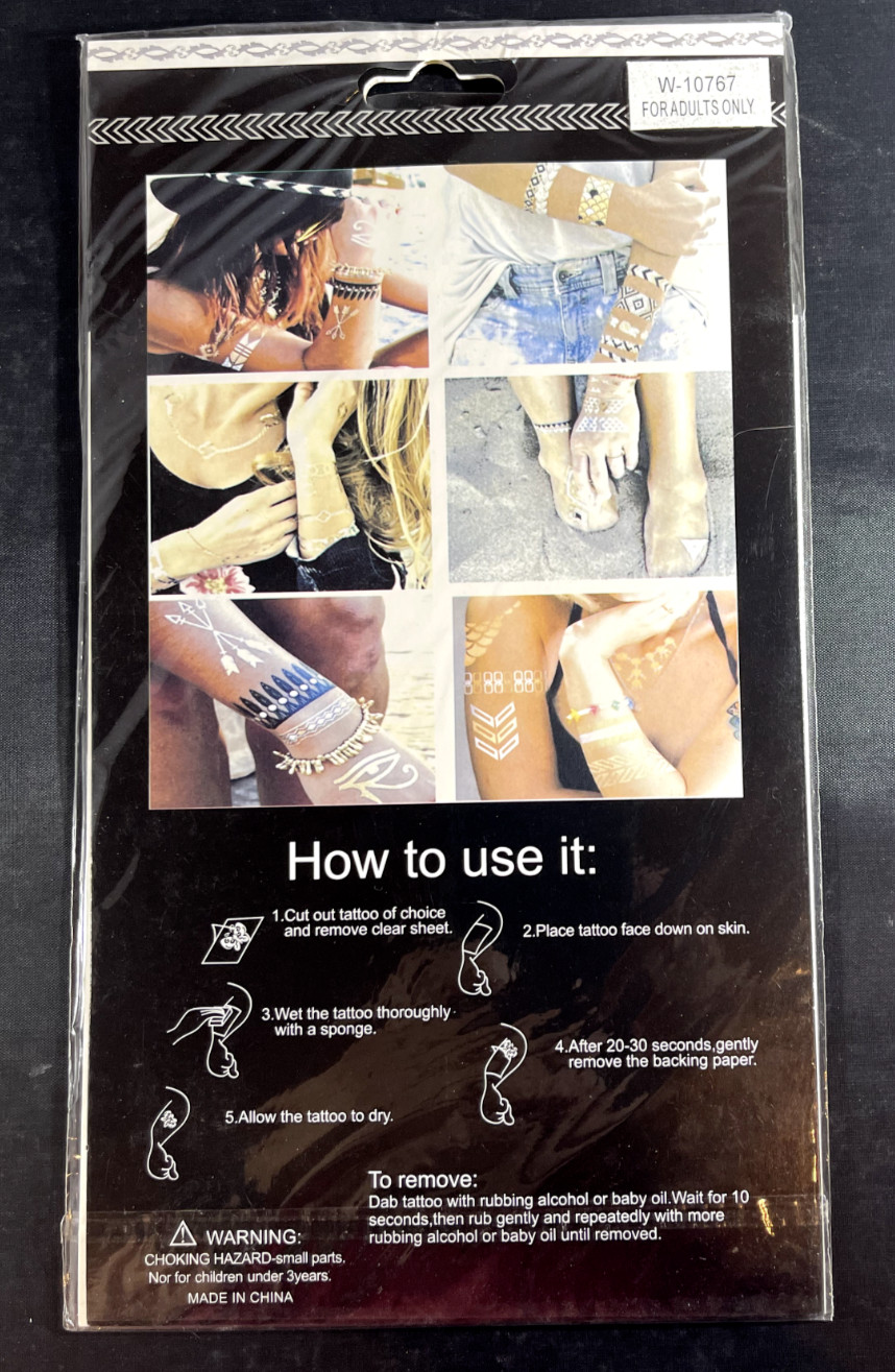 Waterproof Silver Gold Metallic Tattoos, Temporary Body Art Sticker 5 Sheets