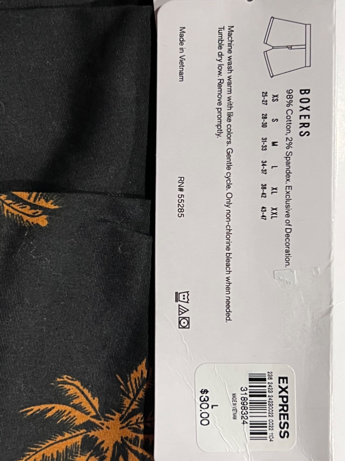 как выглядит NWT EXPRESS Mens Boxer Underwear Sz L-XL Black Brown Palm Trees E1 фото