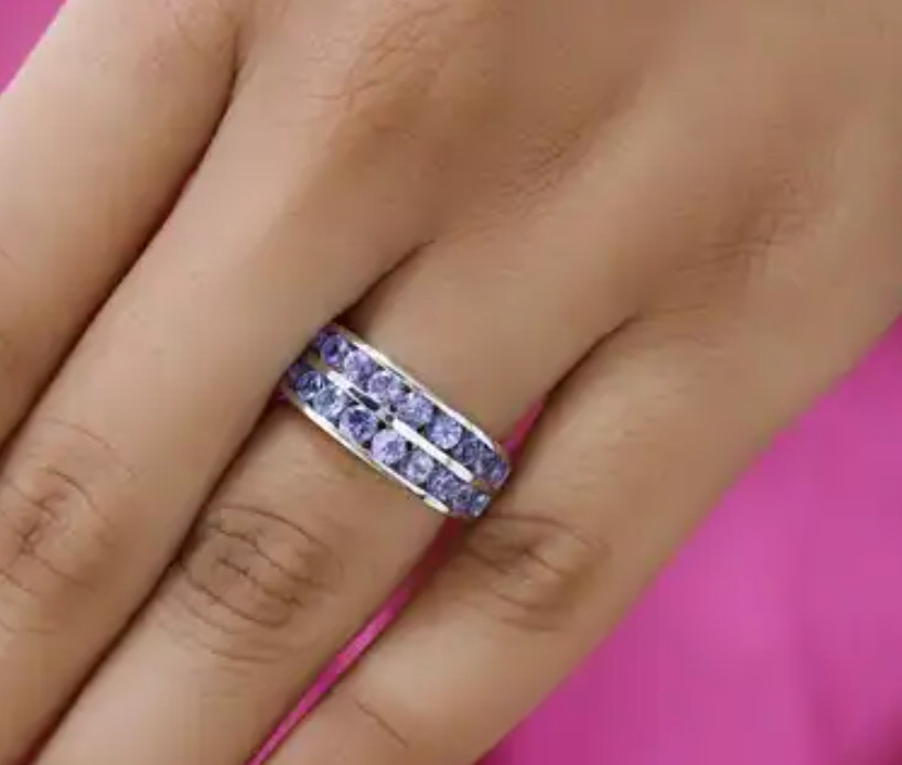 как выглядит Tanzanite Double Half Eternity Band in Platinum Over Sterling 2.0 ctw Size 6 фото