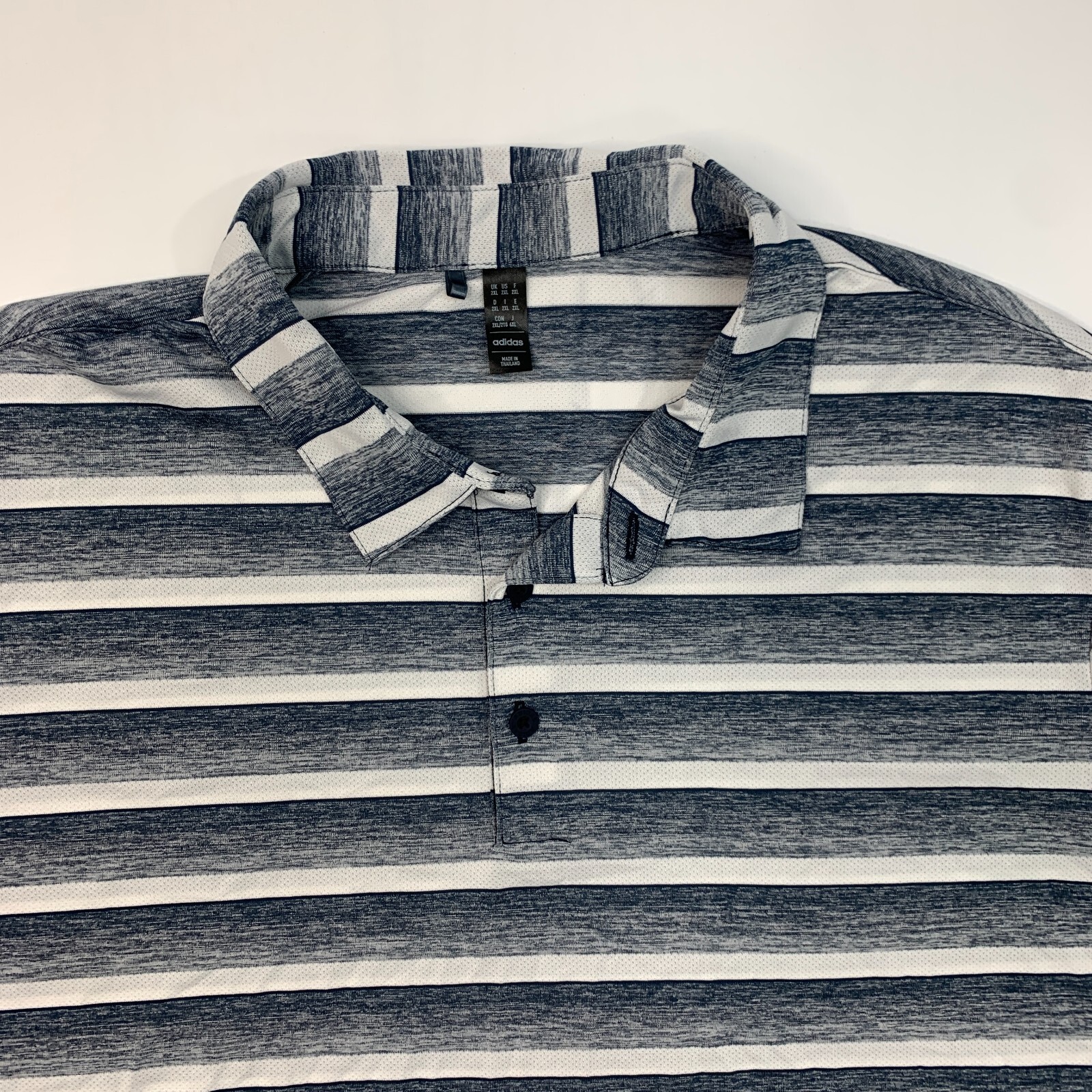 Adidas Golf Polo Shirt Mens 2XL Navy Two Color Striped Lightweight Short Sleeve