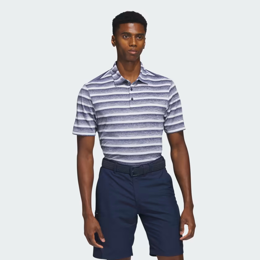 как выглядит Adidas Golf Polo Shirt Mens 2XL Navy Two Color Striped Lightweight Short Sleeve фото