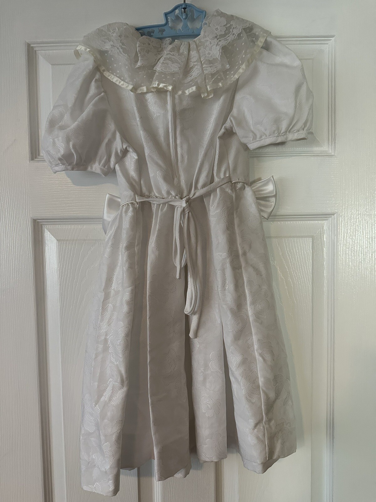 Vintage 80 s Rare Editions Communion Dress 7 White Lace Bows Made In USA Angel