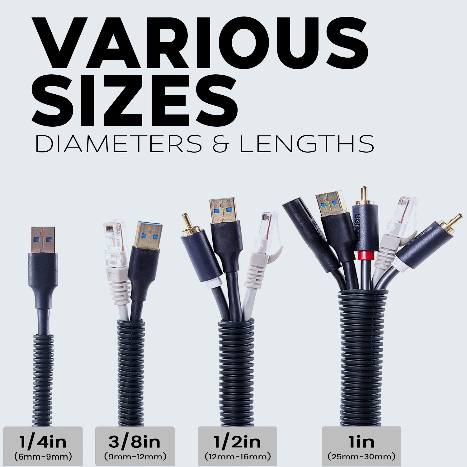 20 Ft Split Loom Combo 1/4 1/2 3/4 Black Wire Harness W/ 7 Cable Ties