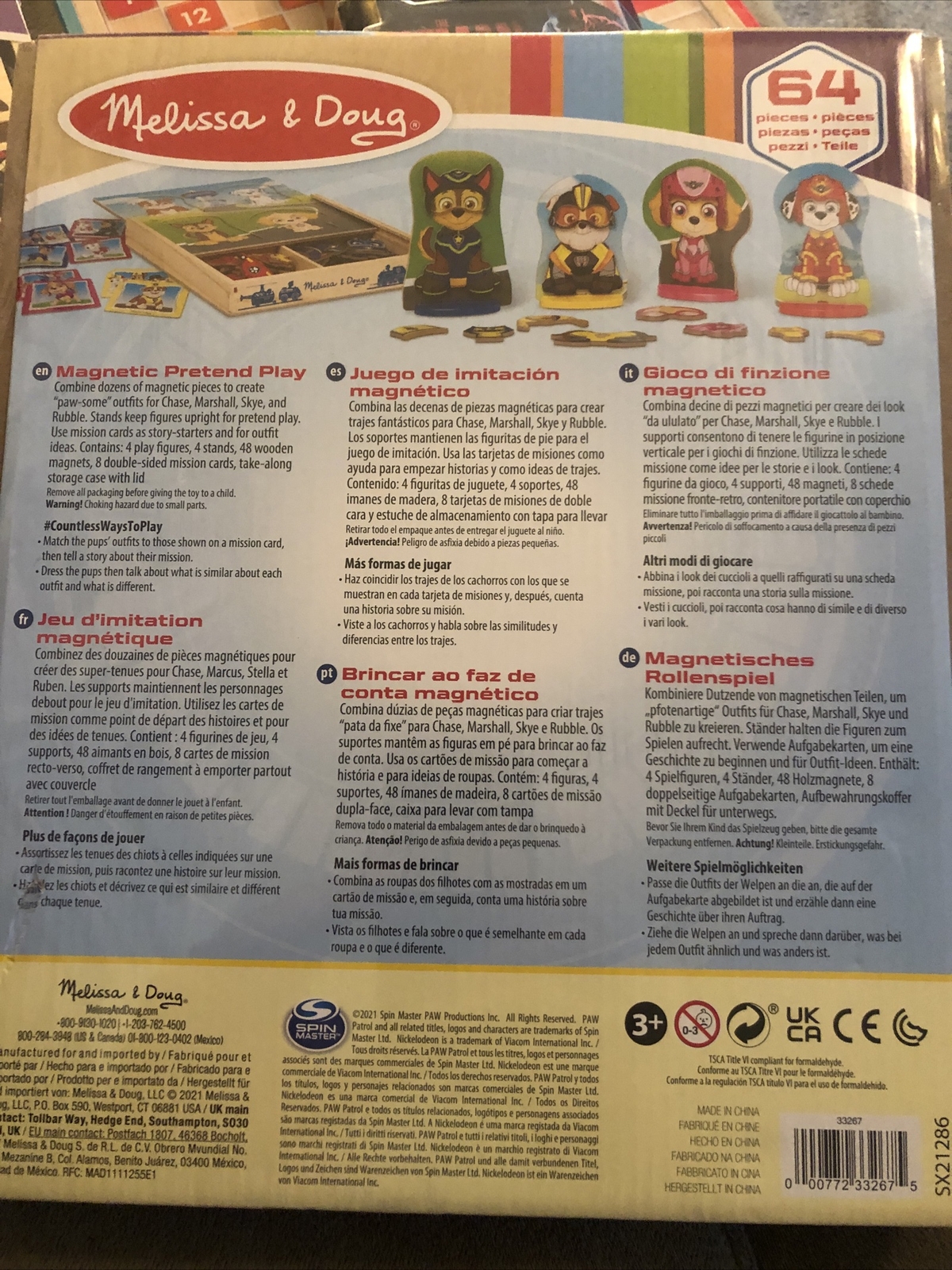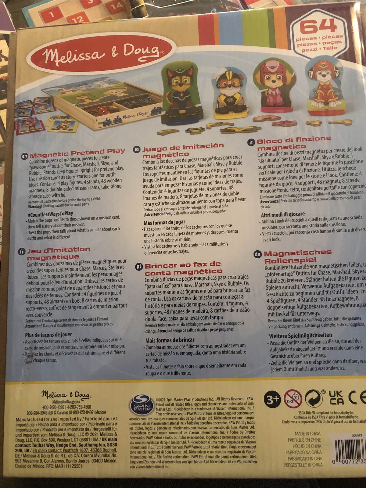 как выглядит Melissa Doug PAW Patrol Wooden Magnetic Pretend Play 64 Pieces New In Box фото