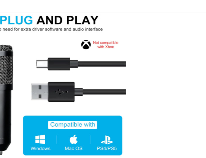 USB Condenser Microphone, Plug Play Professional Cardioid Studio Mic Kit Shock
