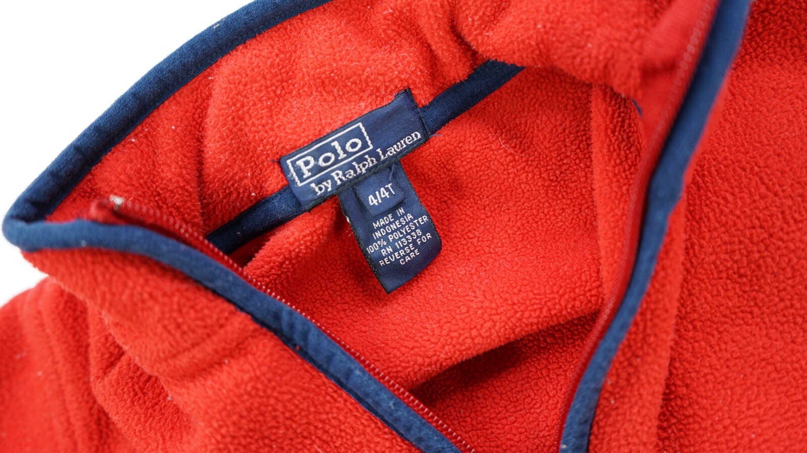 как выглядит Rare Vintage POLO RALPH LAUREN Spell Out 1/4 Zip Fleece Sweatshirt 2000s Red 4T фото
