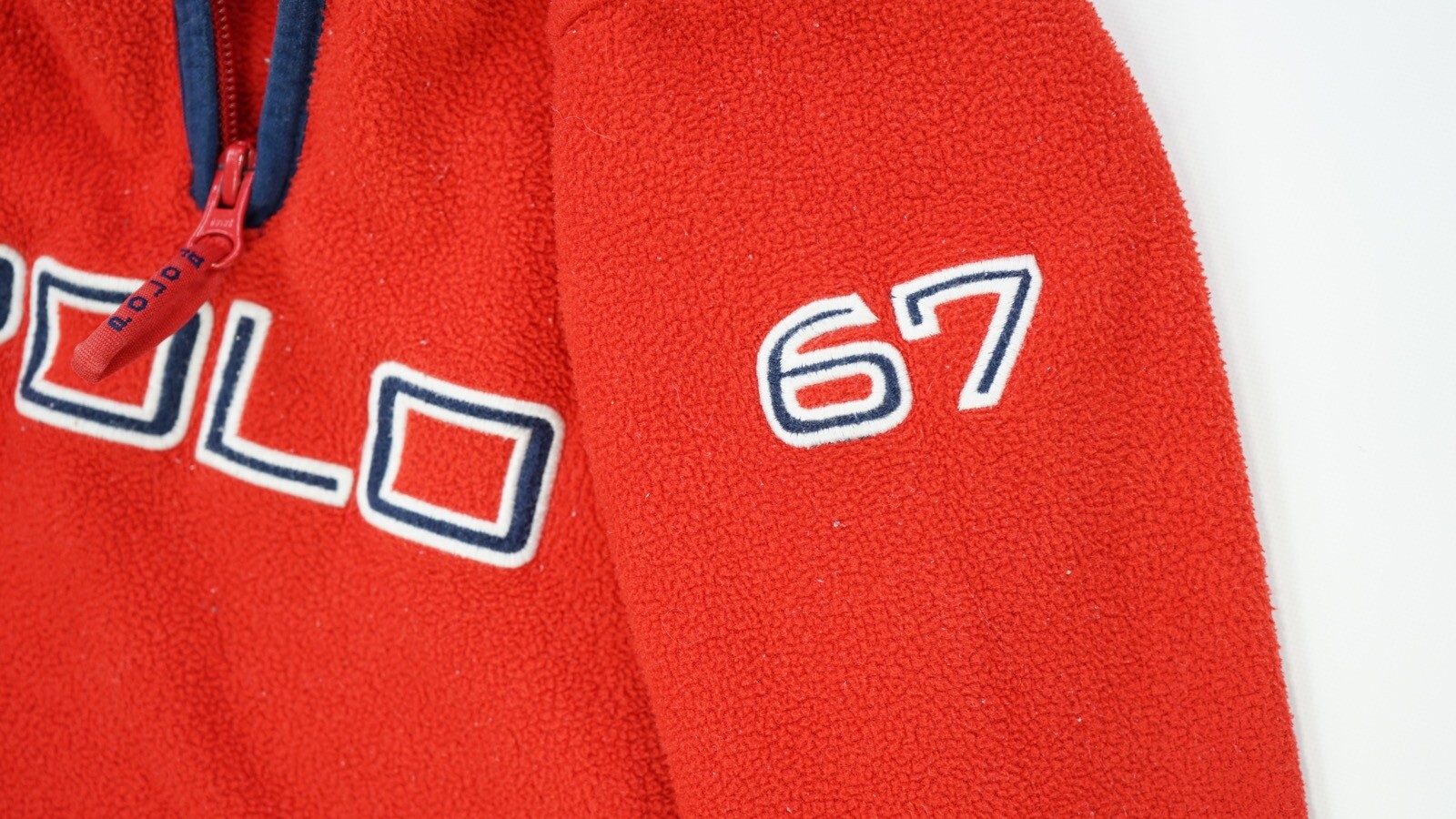 Rare Vintage POLO RALPH LAUREN Spell Out 1/4 Zip Fleece Sweatshirt 2000s Red 4T