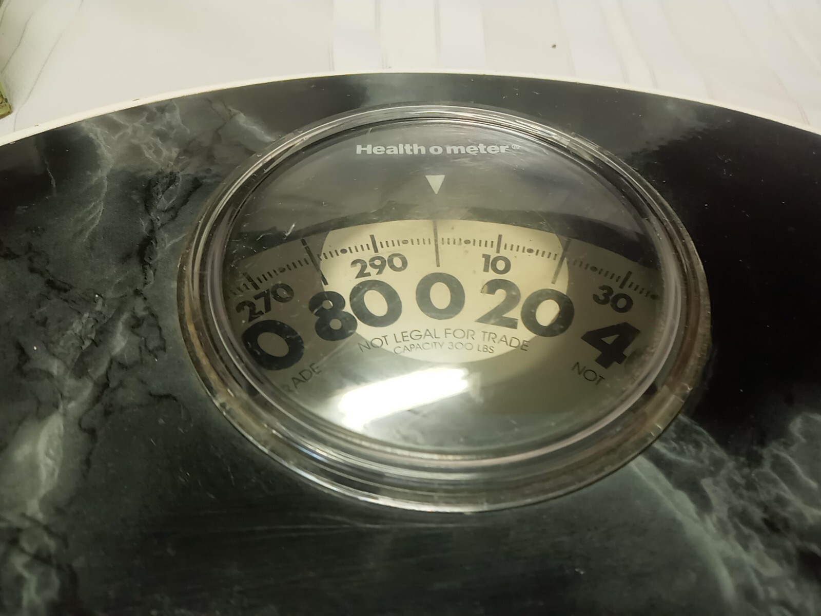 Vintage HEALTH O METER BATHROOM SCALE 300 pounds Model 72 Black MARBLED Works