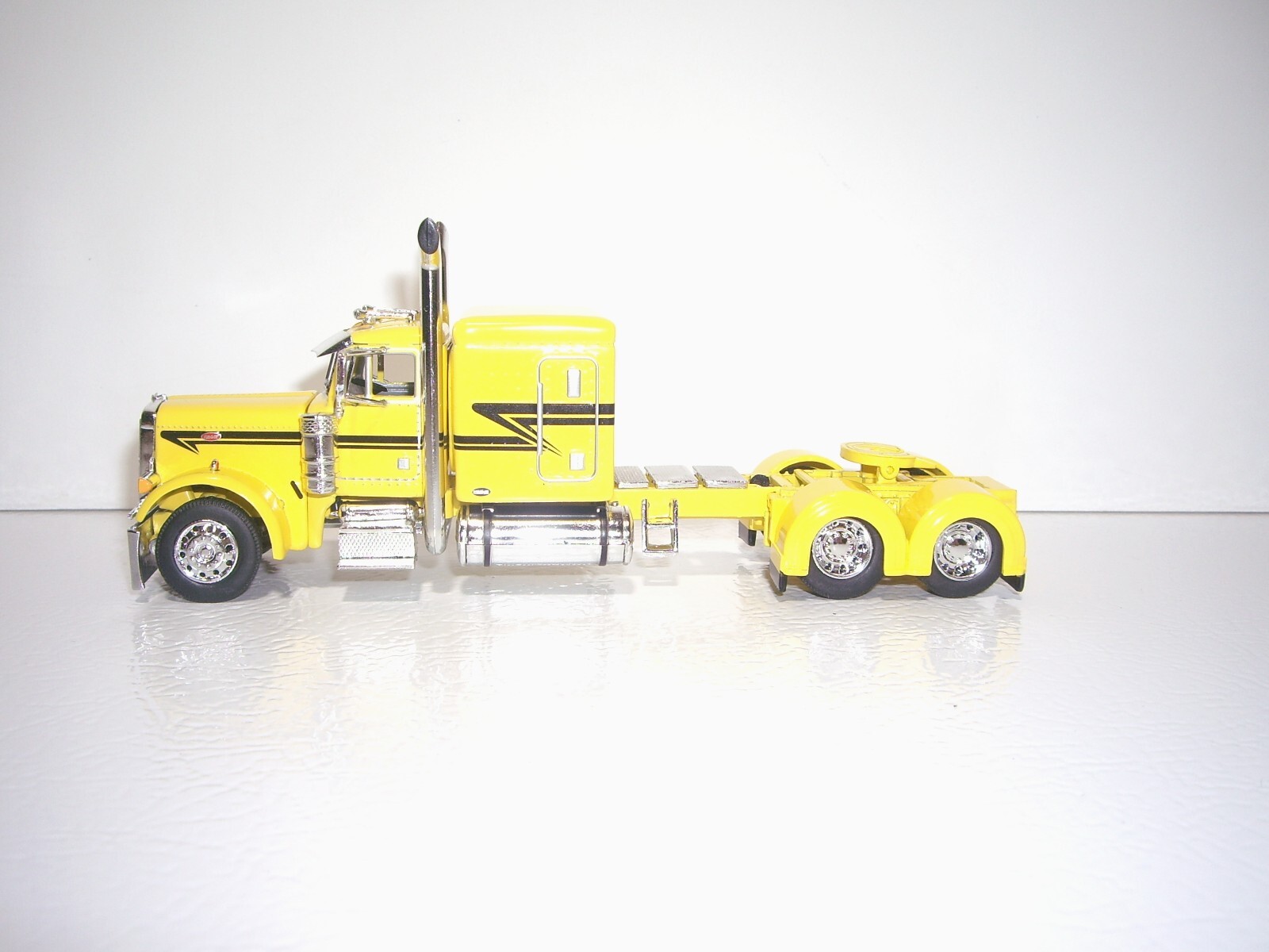 DCP FIRST GEAR 1/64 YELLOW PETE 379 WITH SLEEPER SPREAD AXLE TAUTLINER TRAILER