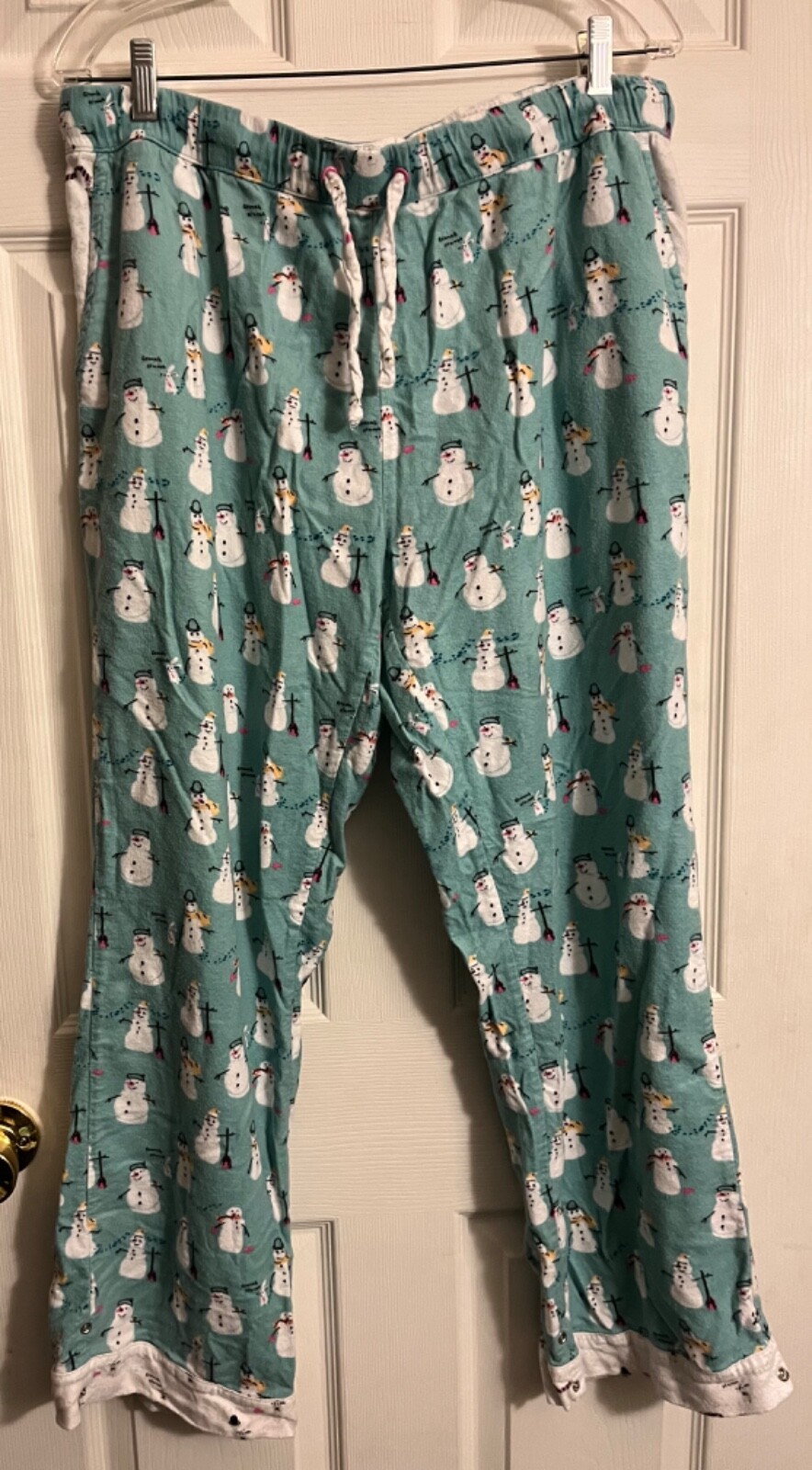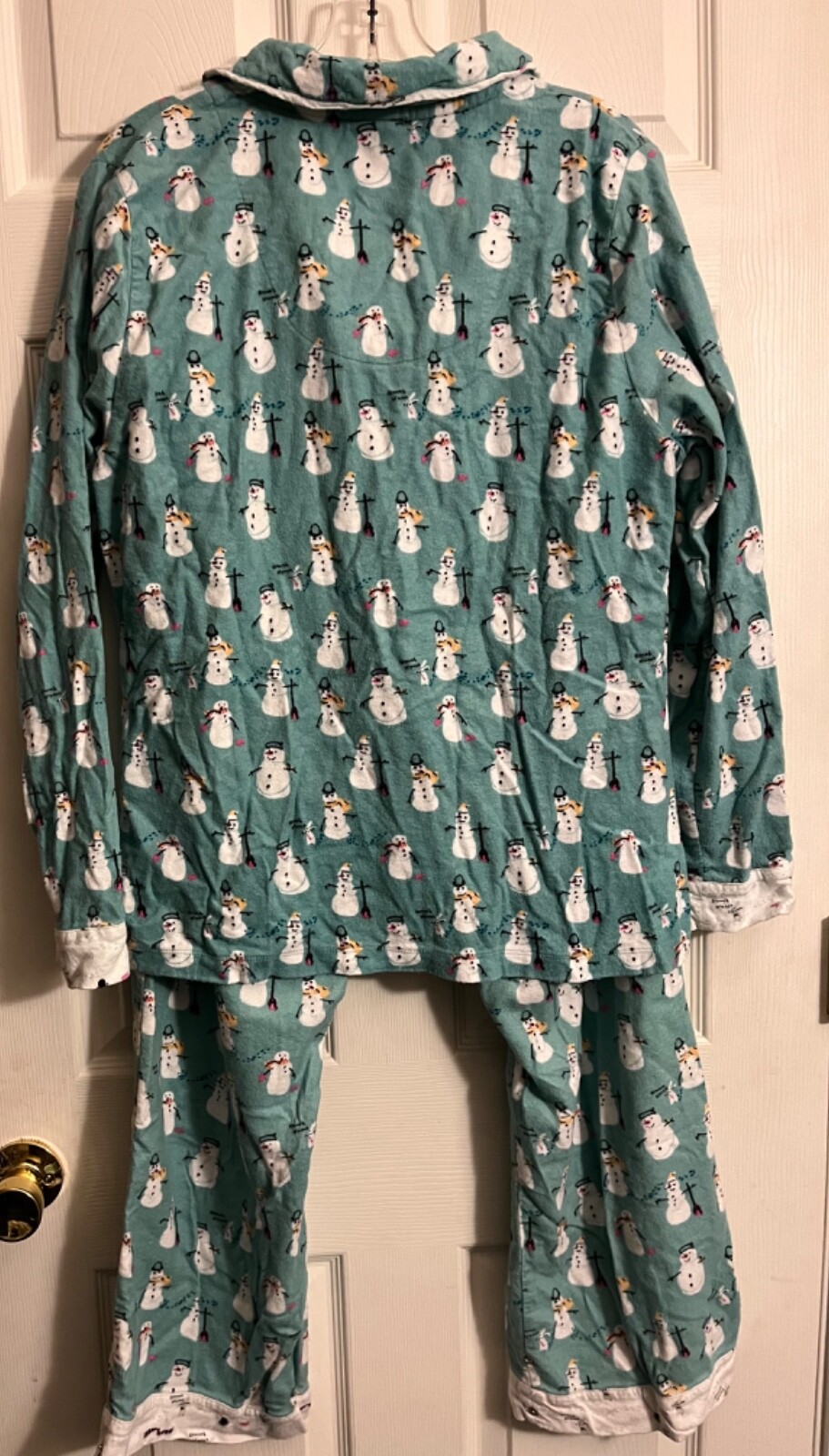 Munki Munki 2 pc Pajamas Long Sleeve Shirt Pants Snowman Green Womens Large