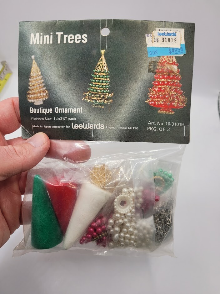 LeeWards MINI TREES Red/Green/White Makes 3 Sequin Bead Christmas Ornament Kit