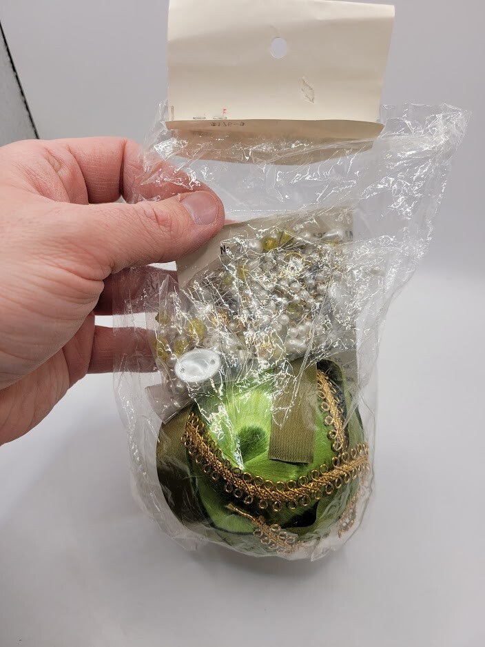 Dexters LeeWards PEARL DRAPED DANDY Green Vtg Sequin Bead Christmas Ornament Kit