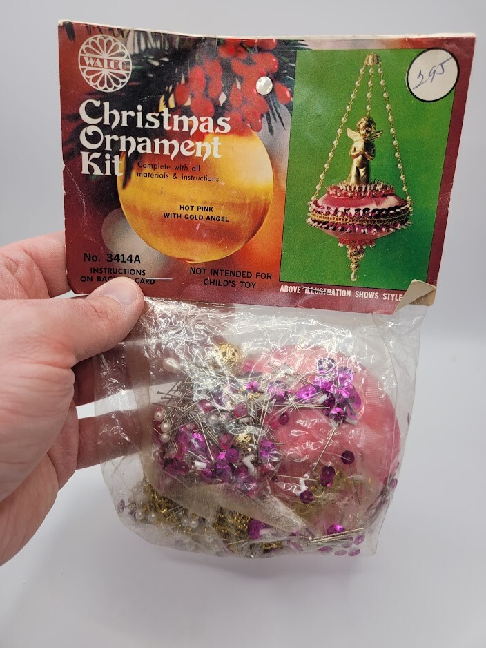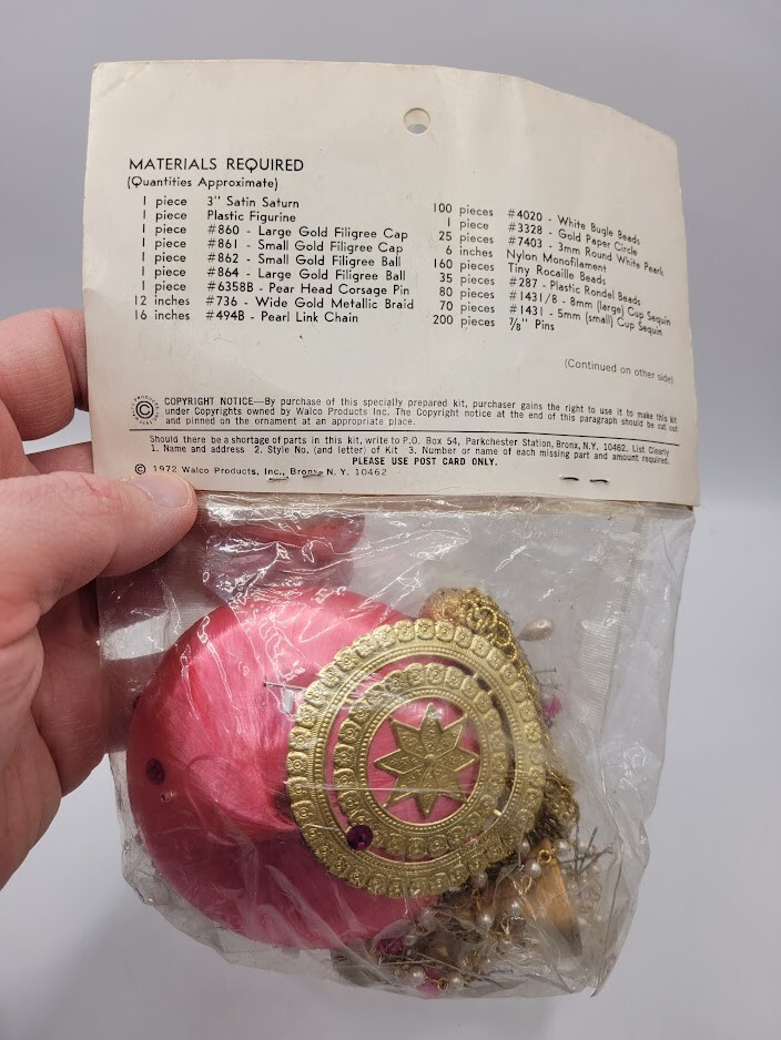 Walco GOLD ANGEL Pink Saturn Panorama Sequin Bead Christmas Ornament Kit Vintage