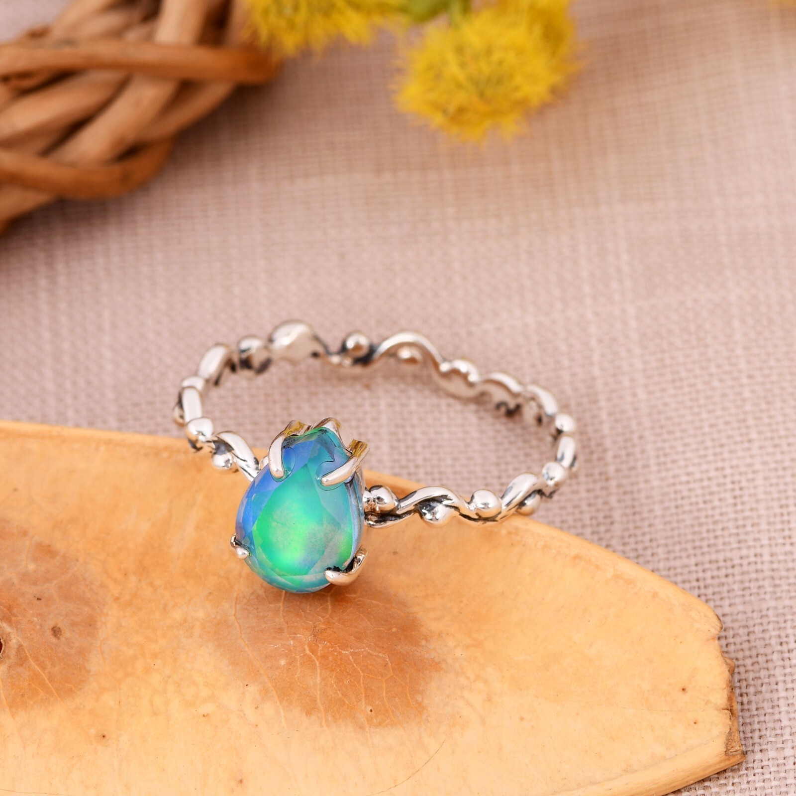 как выглядит Aurora Opal Wave Band Pear Cut Engagement 925 Sterling Silver Rings Gift For Her фото