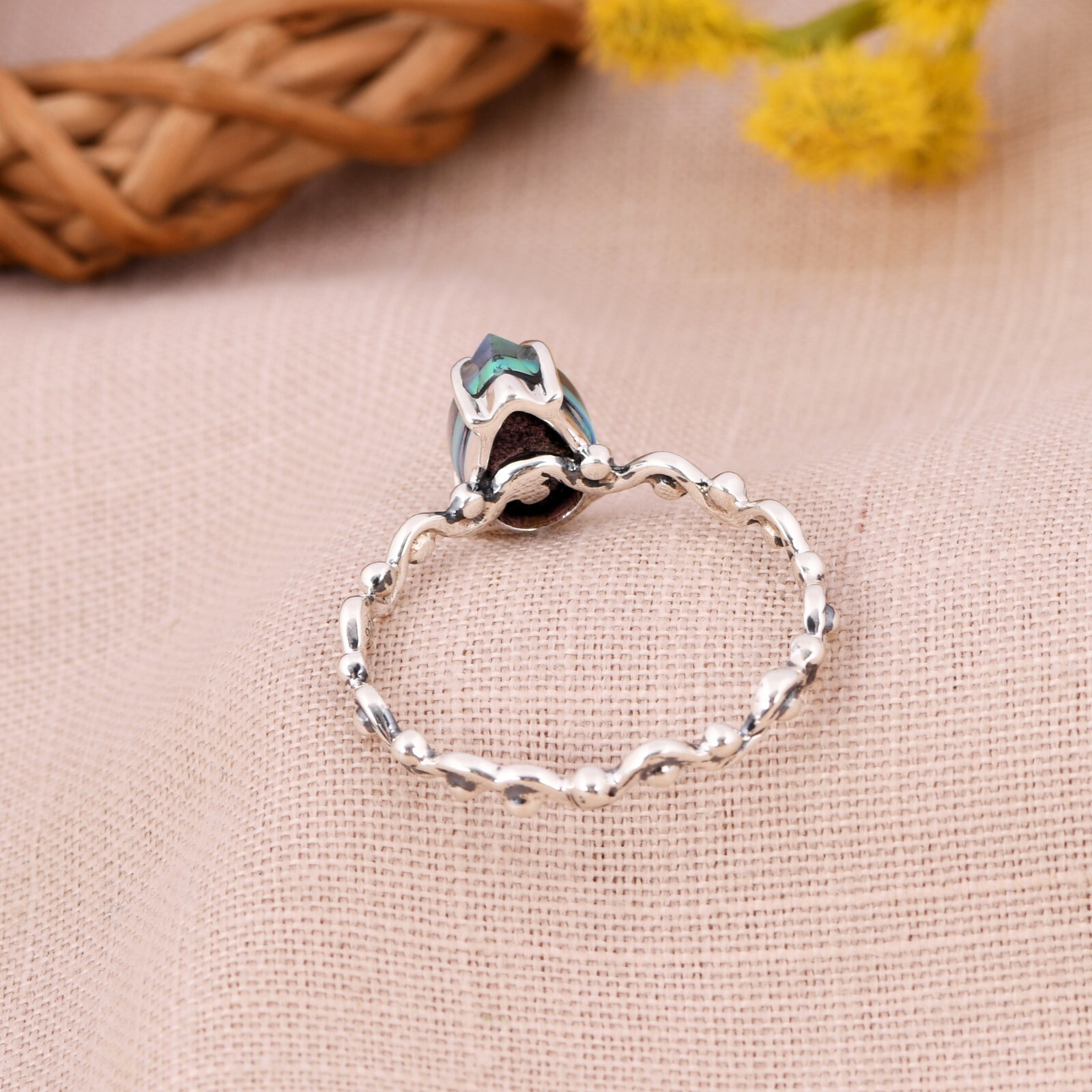 Aurora Opal Wave Band Pear Cut Engagement 925 Sterling Silver Rings Gift For Her