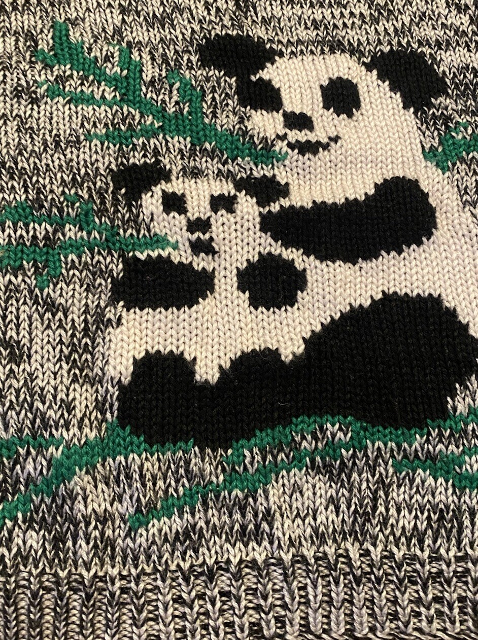Vintage Panda Sweater Black White Bamboo HAND KNITTED Med/large