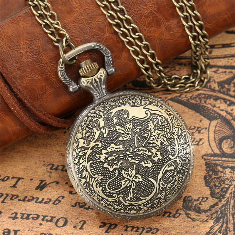 Antique Buddha Design Men Women Quartz Analog Pocket Watch Necklace Chain Gift
