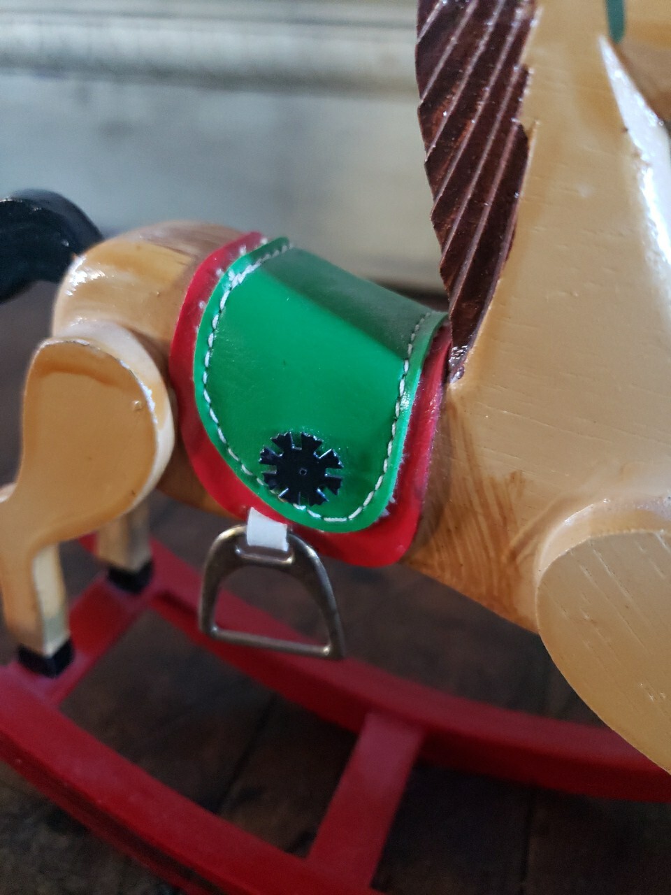 как выглядит Vintage Tan Wood Rocking Horse with Saddle Christmas Nursery Decorative Figurine фото