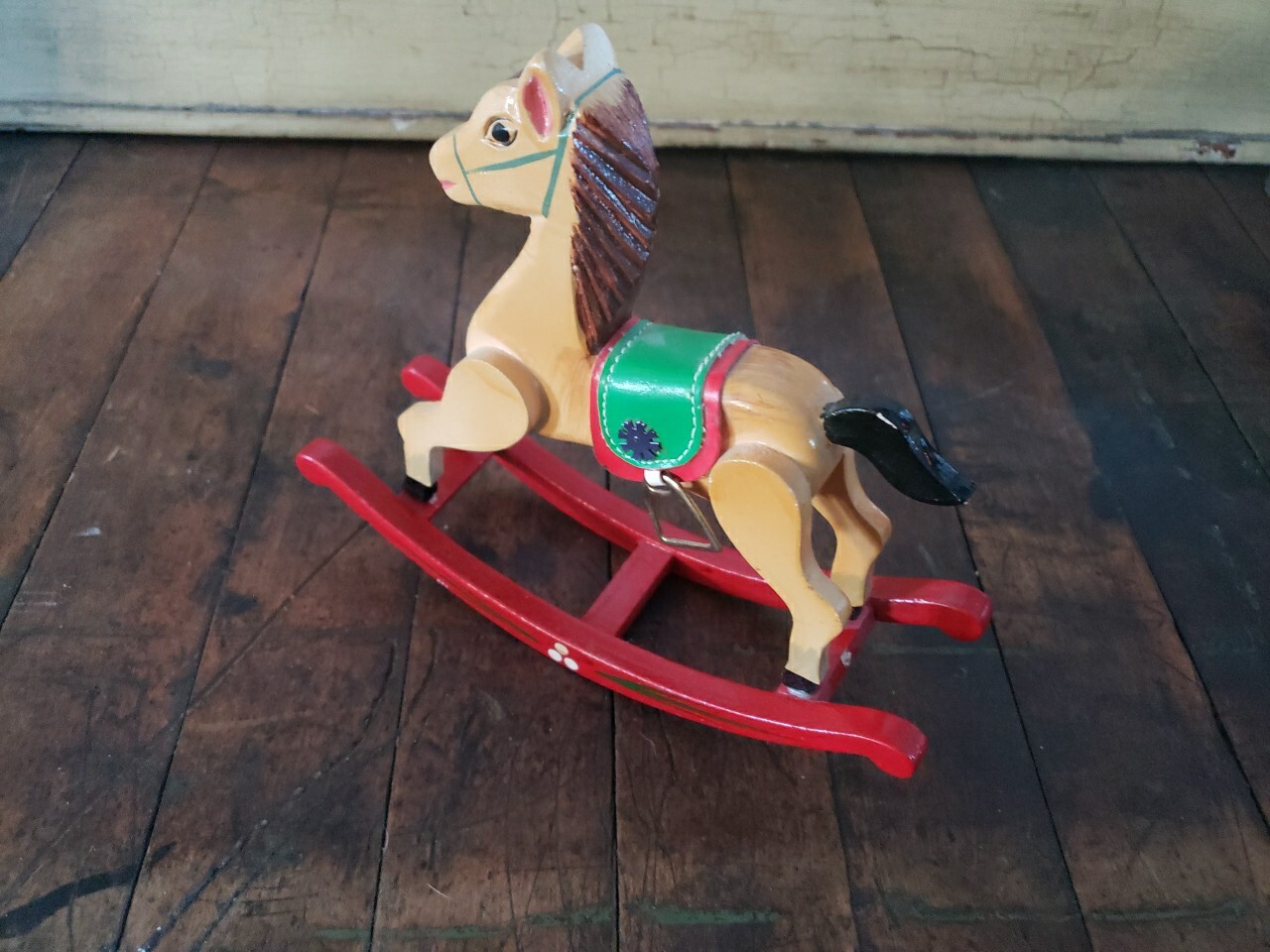 Vintage Tan Wood Rocking Horse with Saddle Christmas Nursery Decorative Figurine